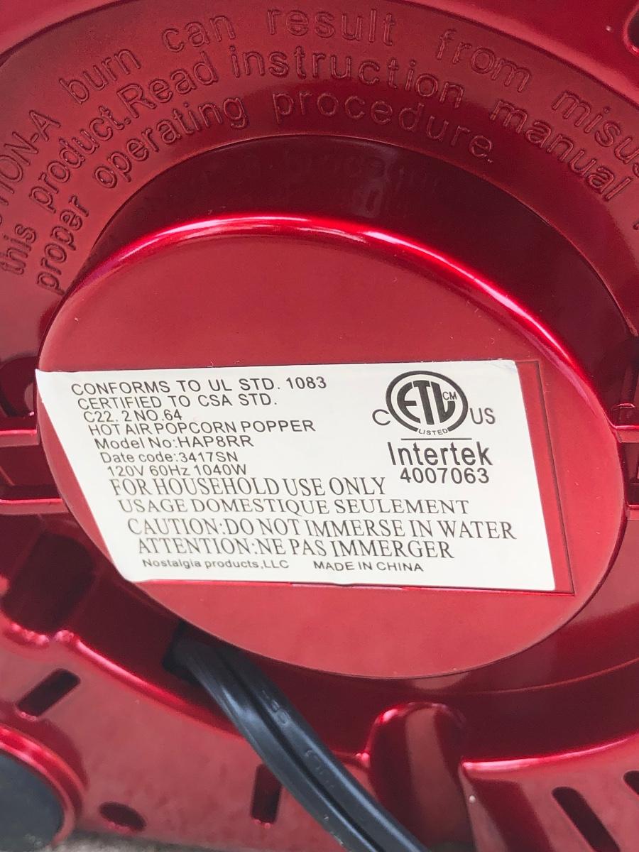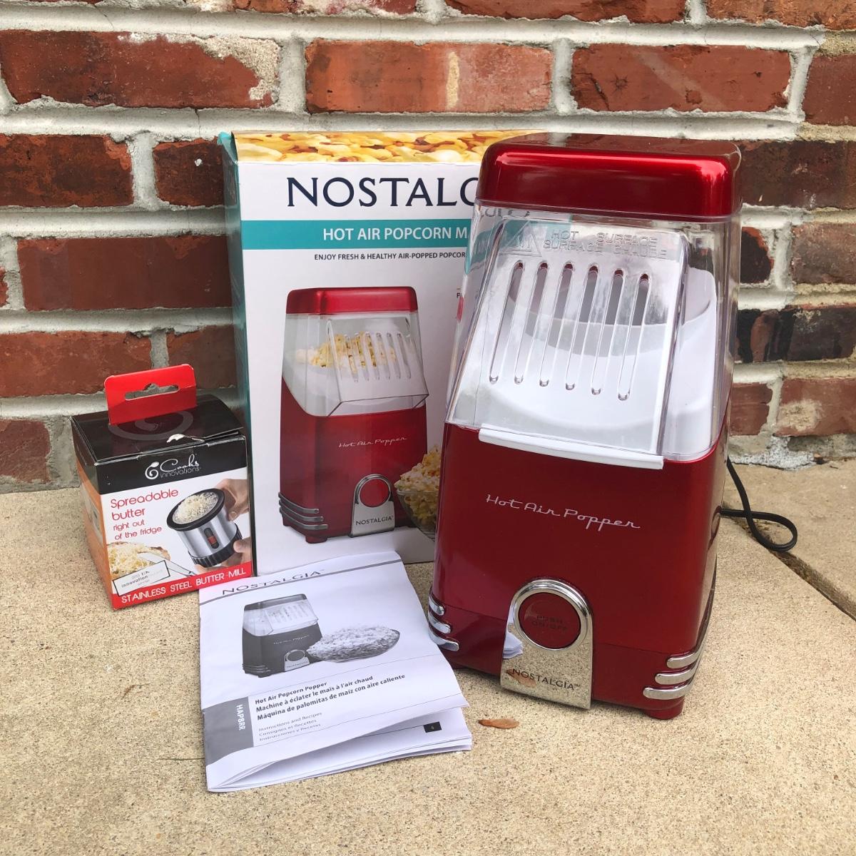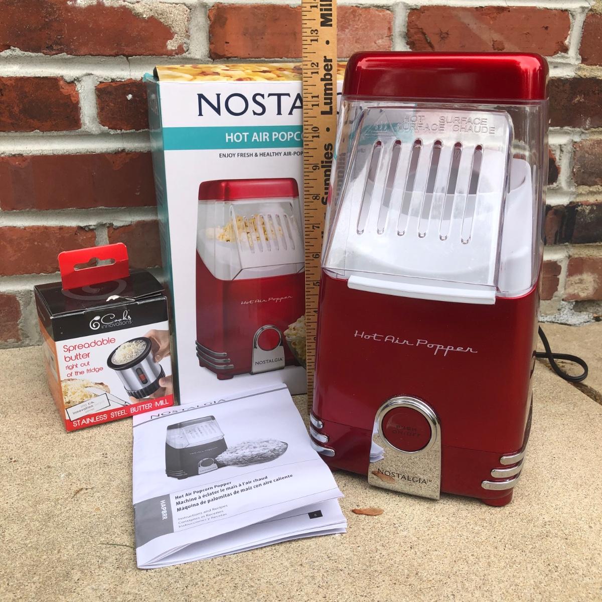 LOT 123G: Nostalgia Hot Air Popcorn Maker Model HAP8PR & Cooks Innovations Stainless Steel Butter Mill