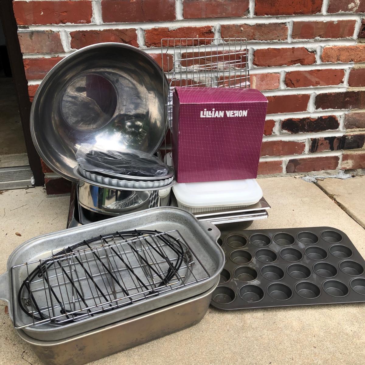 LOT 124G: Large Collection of Baking Pans & Racks incl. Spring Form Cake Pan, Lillian Vernon Heart Cake Pan & More