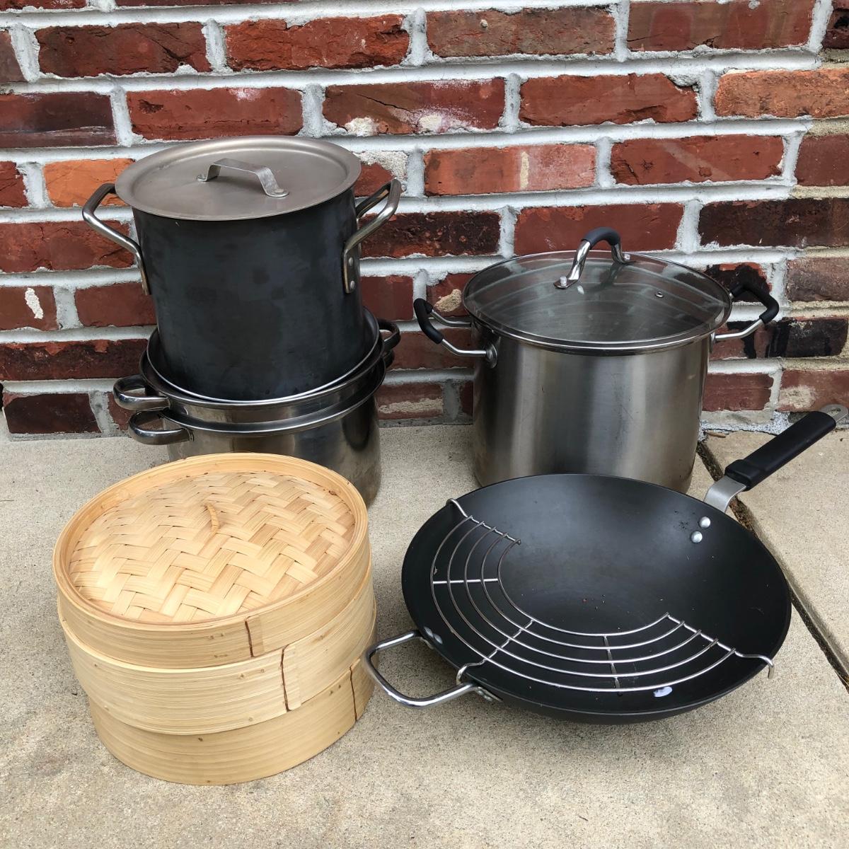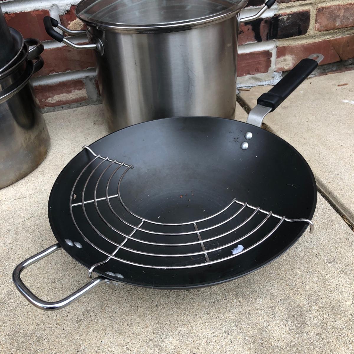 LOT 125G: Wok, Steamer Basket, Calphalon Pot & More