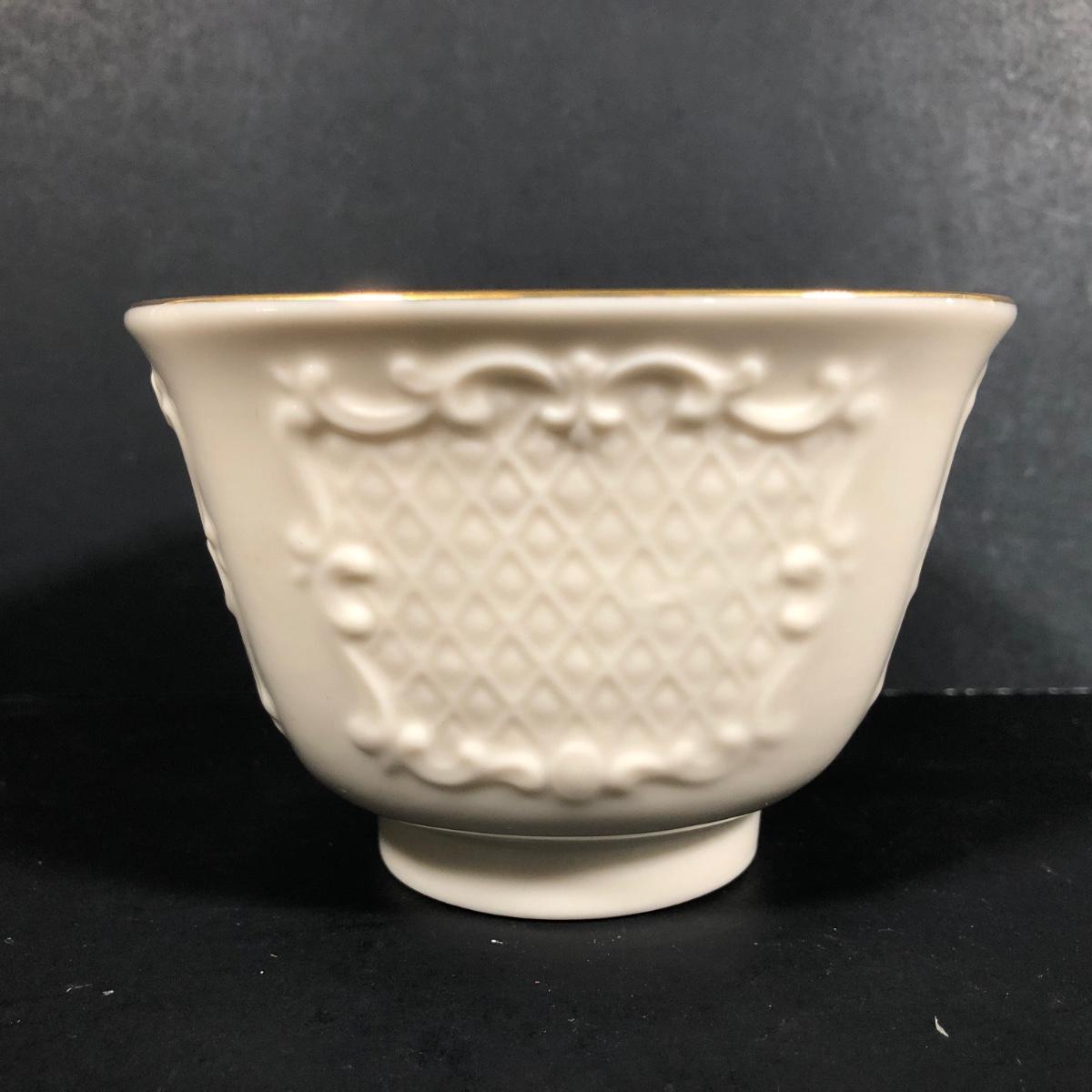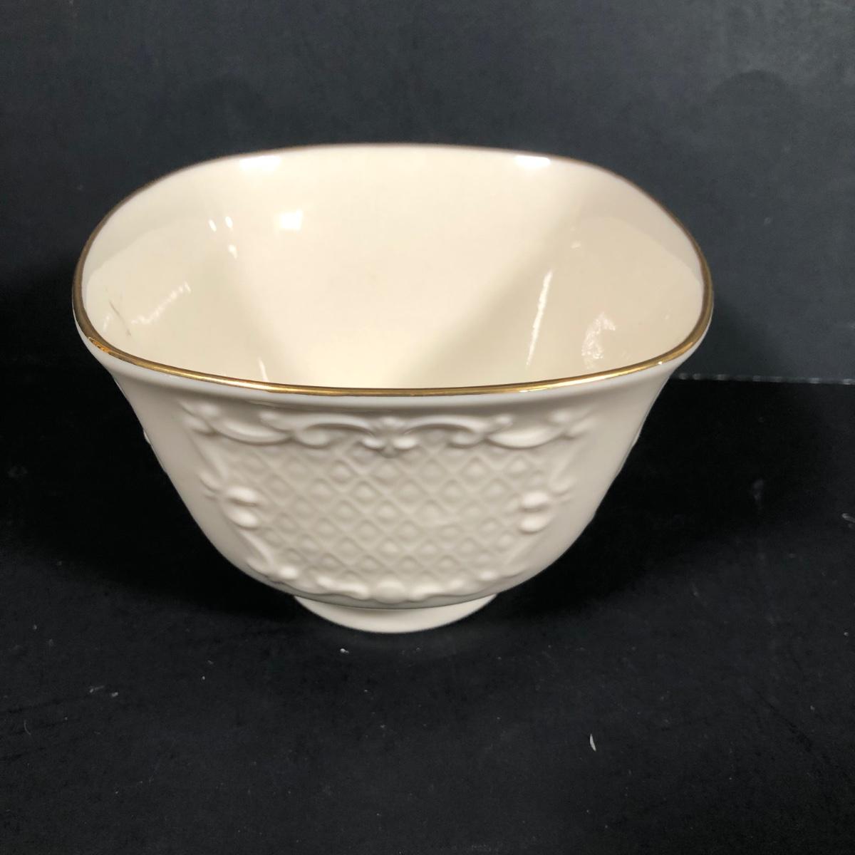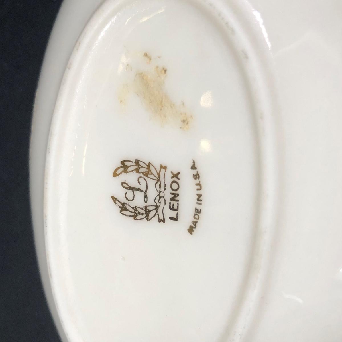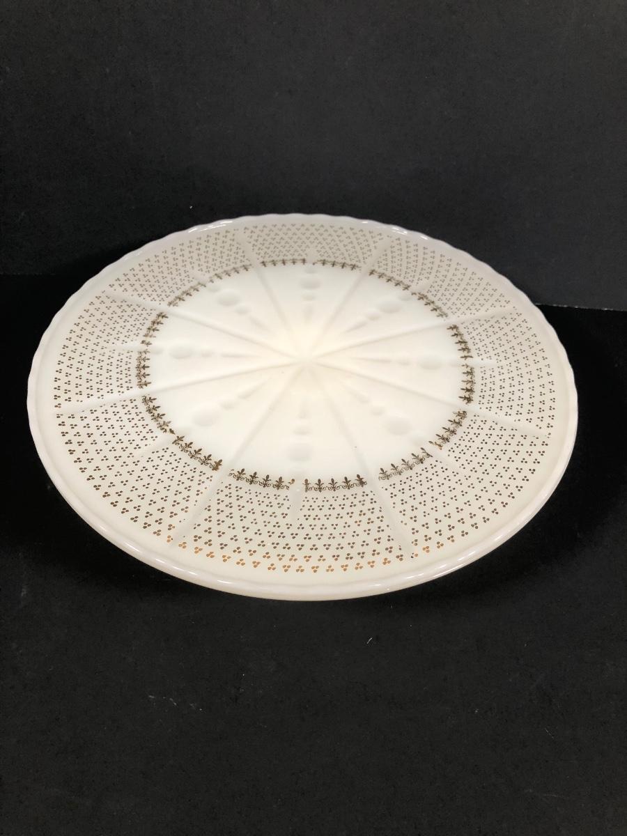 LOT 136D: Vintage White Cake Plate, Lace Ruffled Edge Glass Dish, Crystal Candlesticks, Lenox & Candlesticks