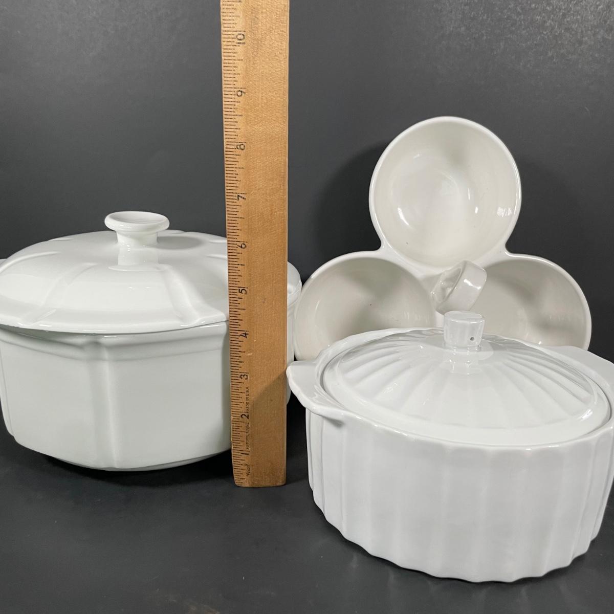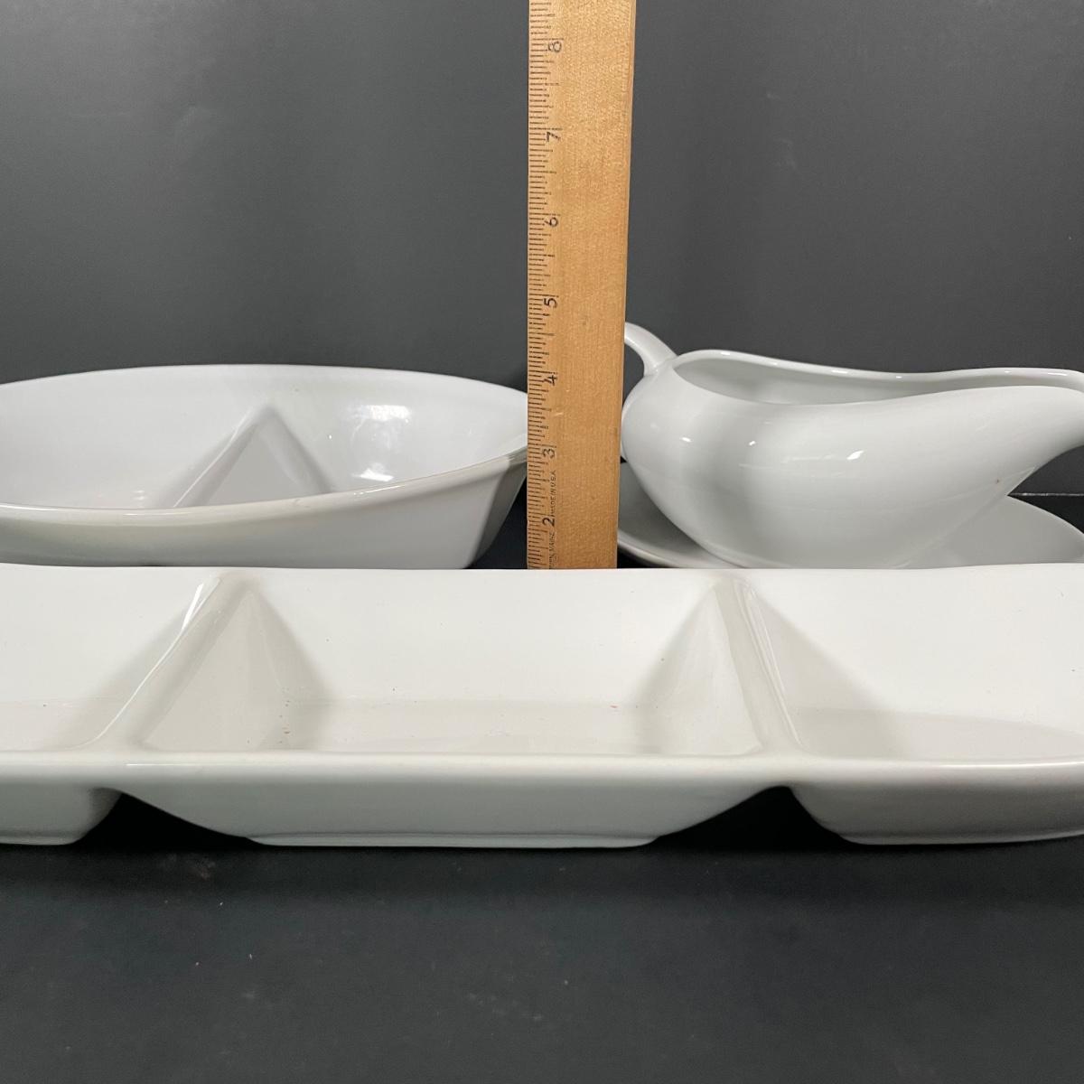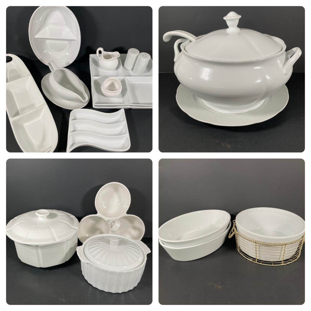 LOT 140D: Large Collection Of White China - Gravy Boat, Serving Trays & More