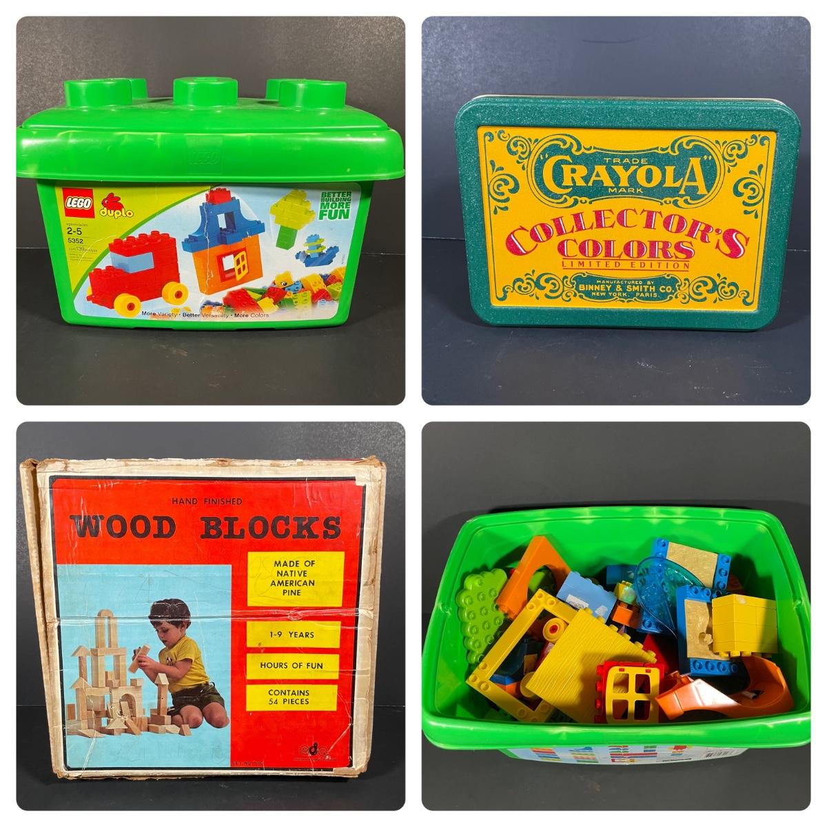 LOT 144B: Children’s Toys- Legos, Building Blocks, Crayola Collectors Colors Crayons