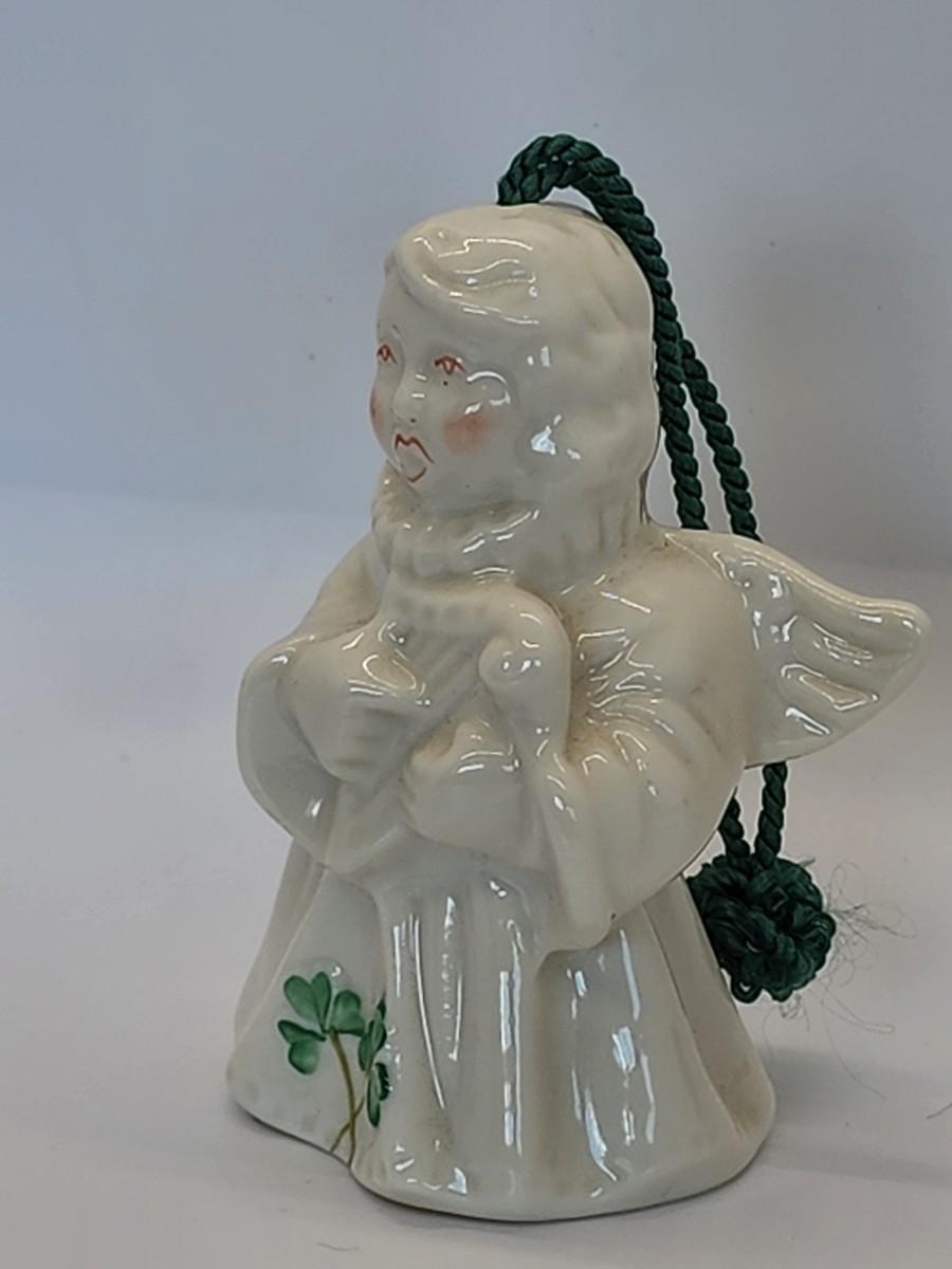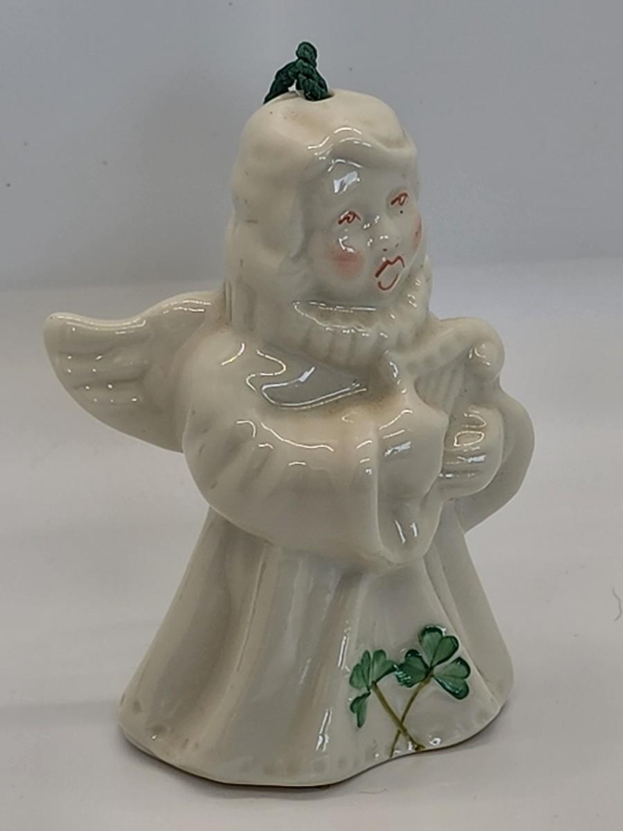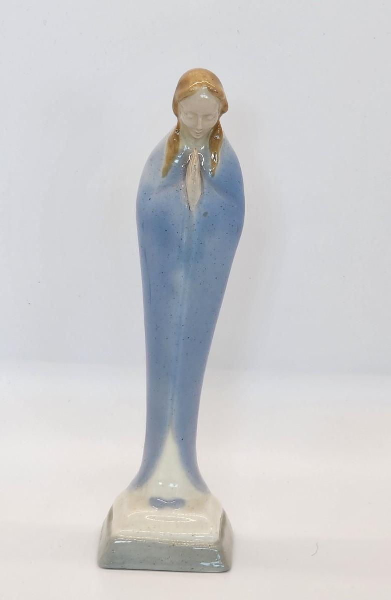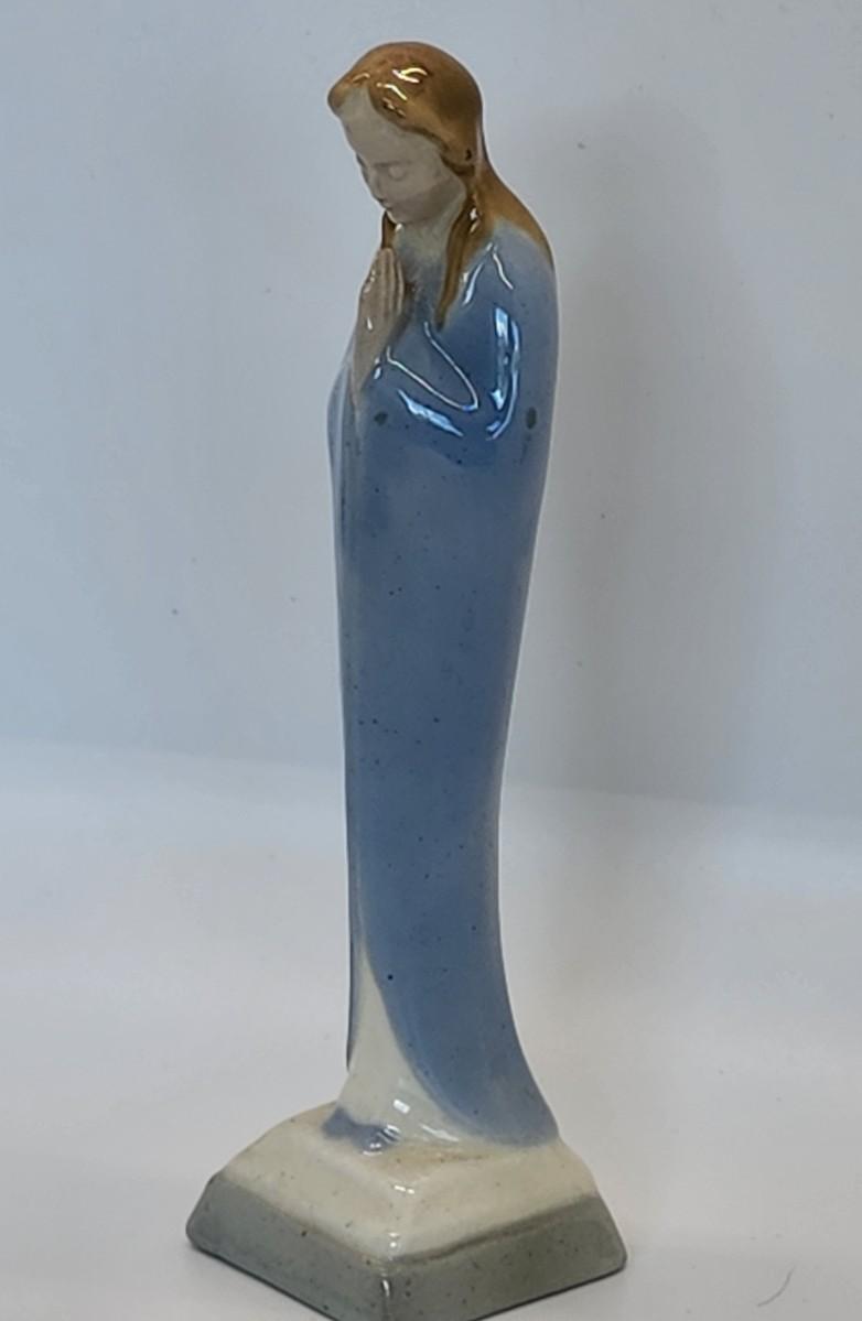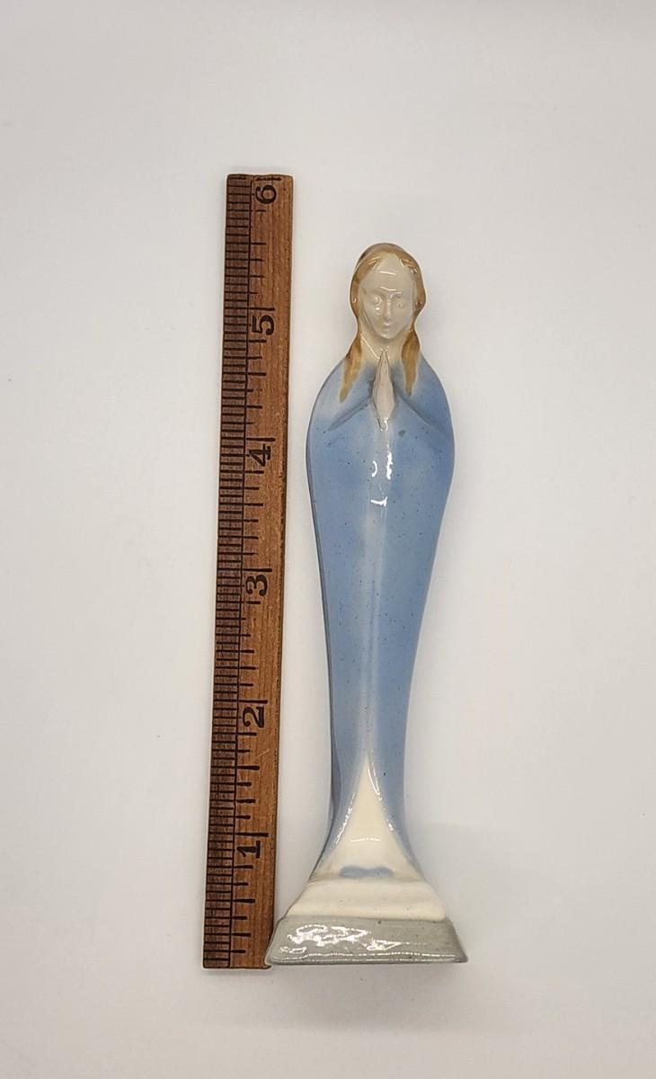 LOT 6:: Virginia Mary fiqurine bone china England, MJ Hummel Madonna&Child plaque, Belleek China Angel Bell and Portuguese handmade lead crystal Blue Bud vase