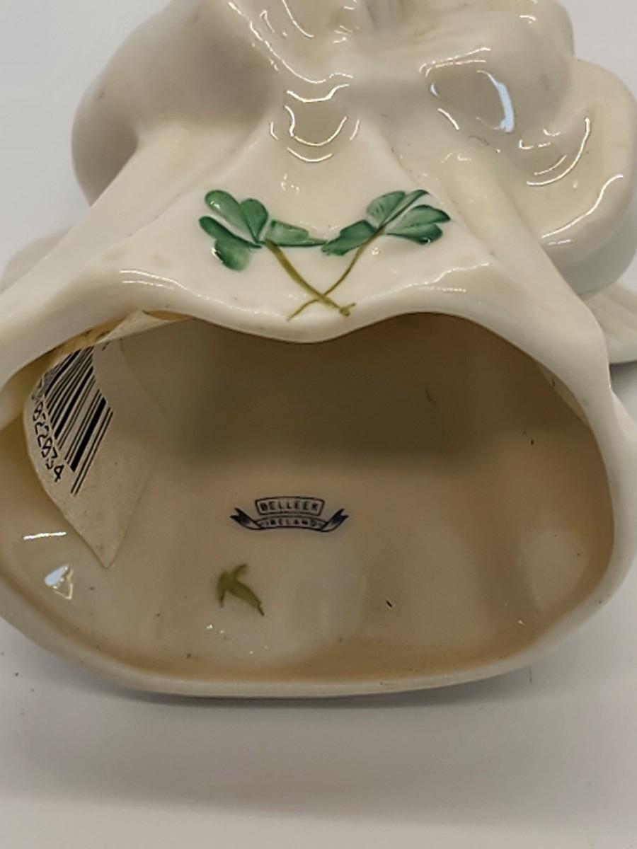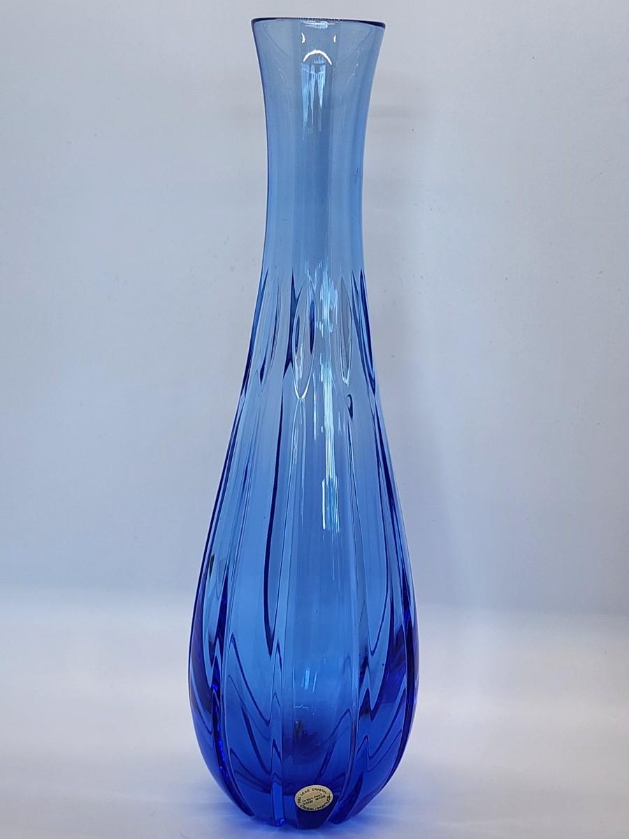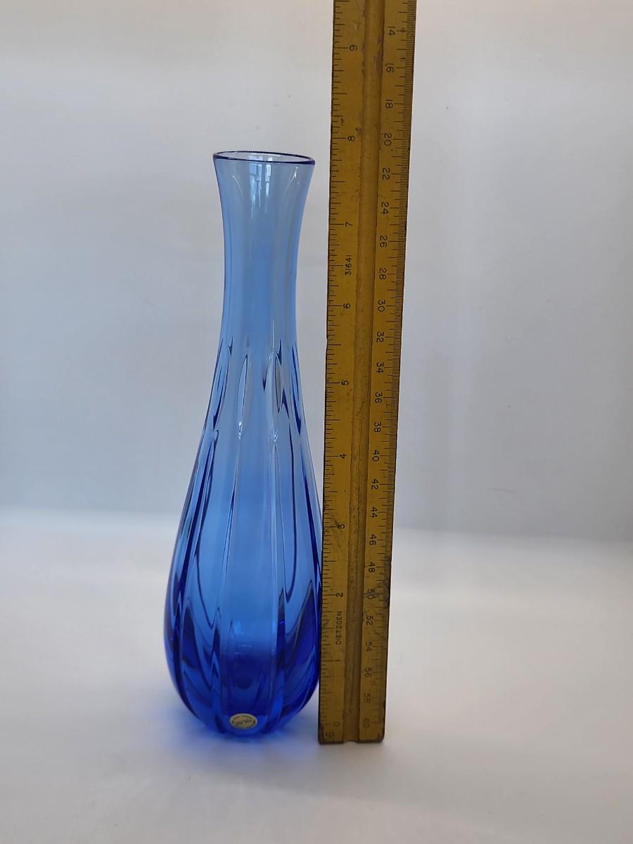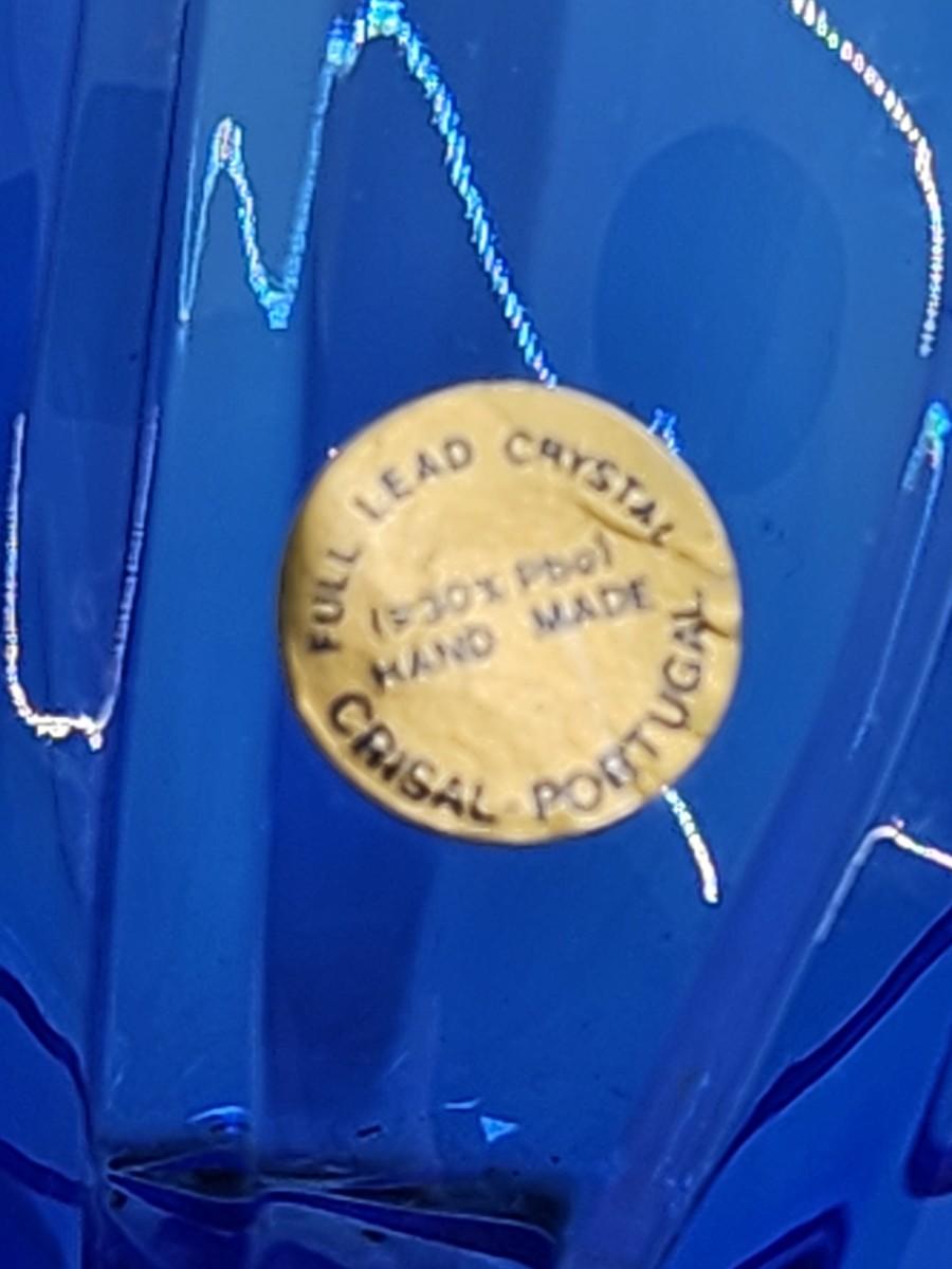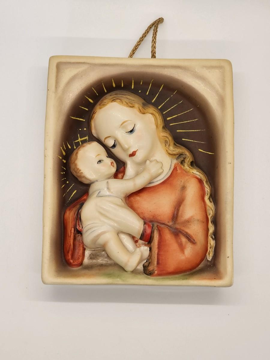 LOT 6:: Virginia Mary fiqurine bone china England, MJ Hummel Madonna&Child plaque, Belleek China Angel Bell and Portuguese handmade lead crystal Blue Bud vase