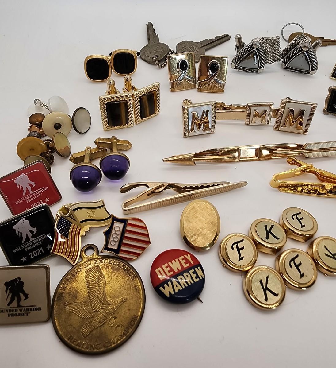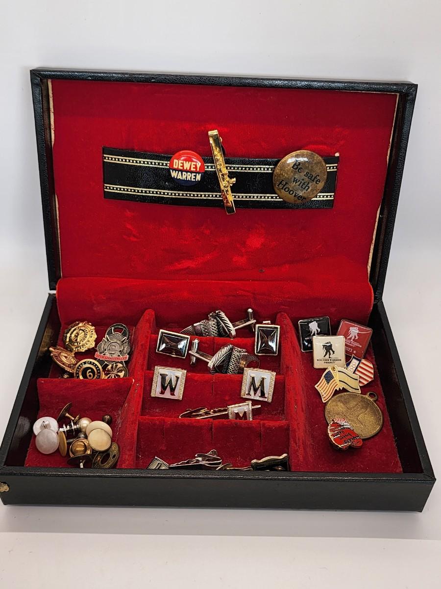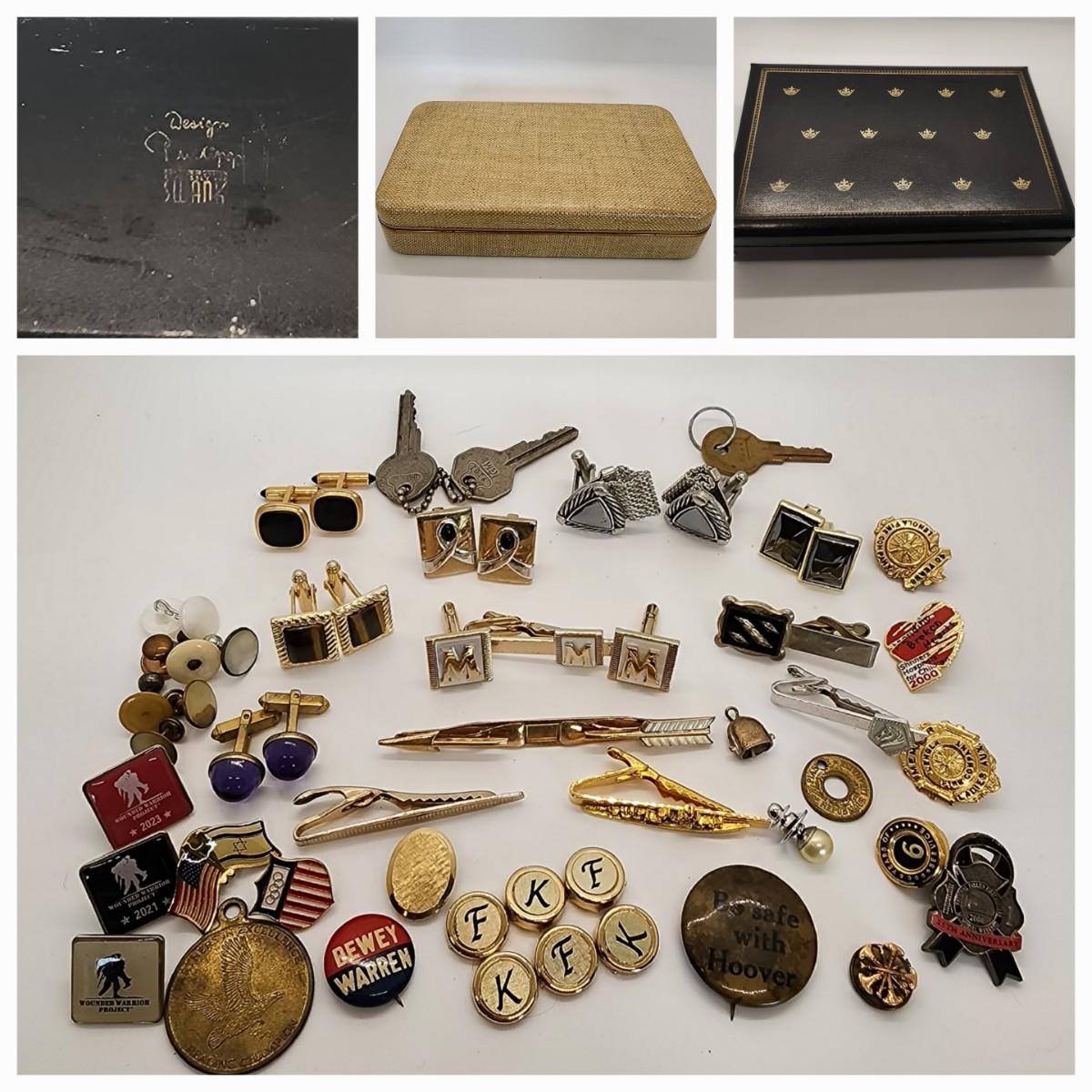 LOT 9:: Two mens jewelry boxes Tie bars, Cufflings & more featuring Anson, Shields and more