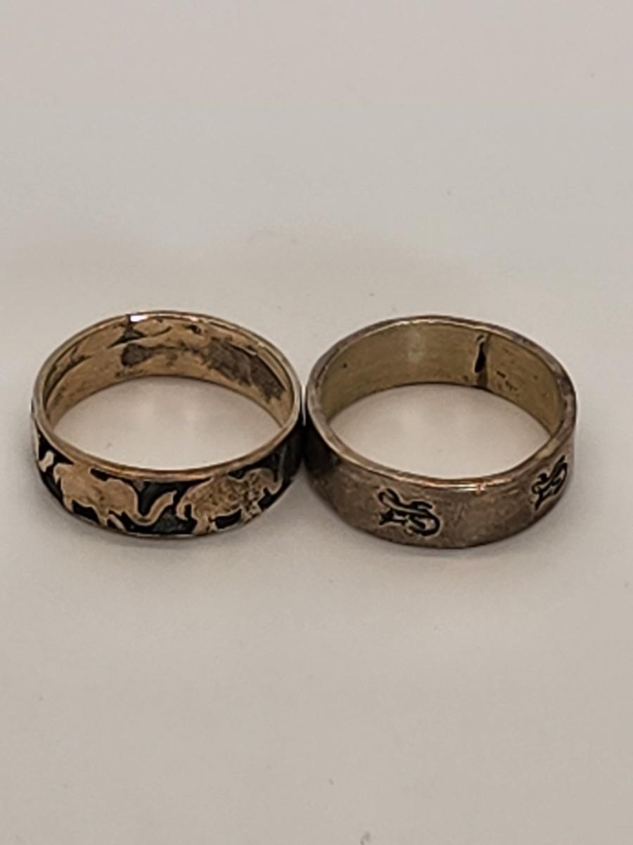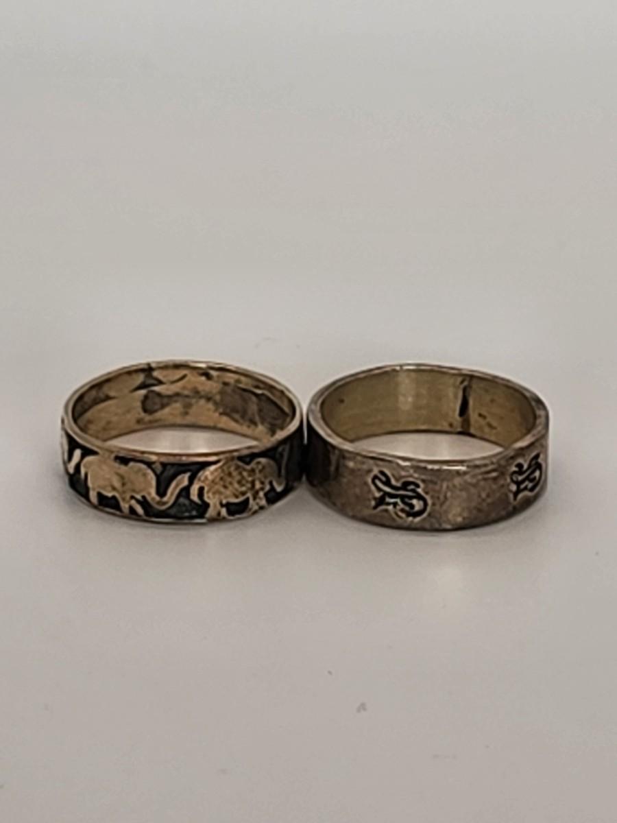 LOT 11 :: Two Sterling Silver Rings 6.7g - Elephants & Iquanas- Sz. 7
