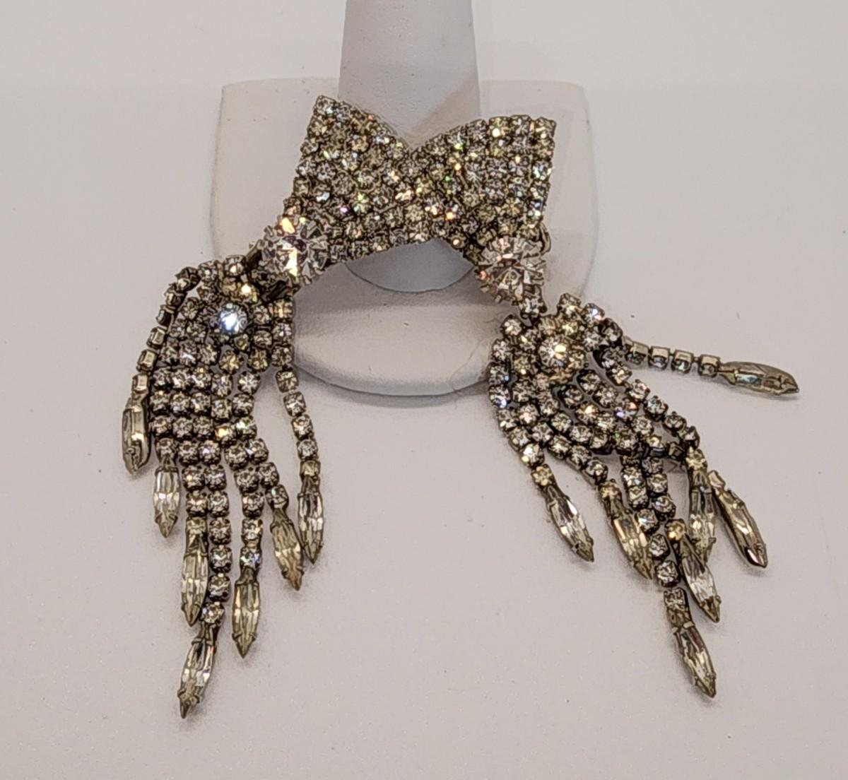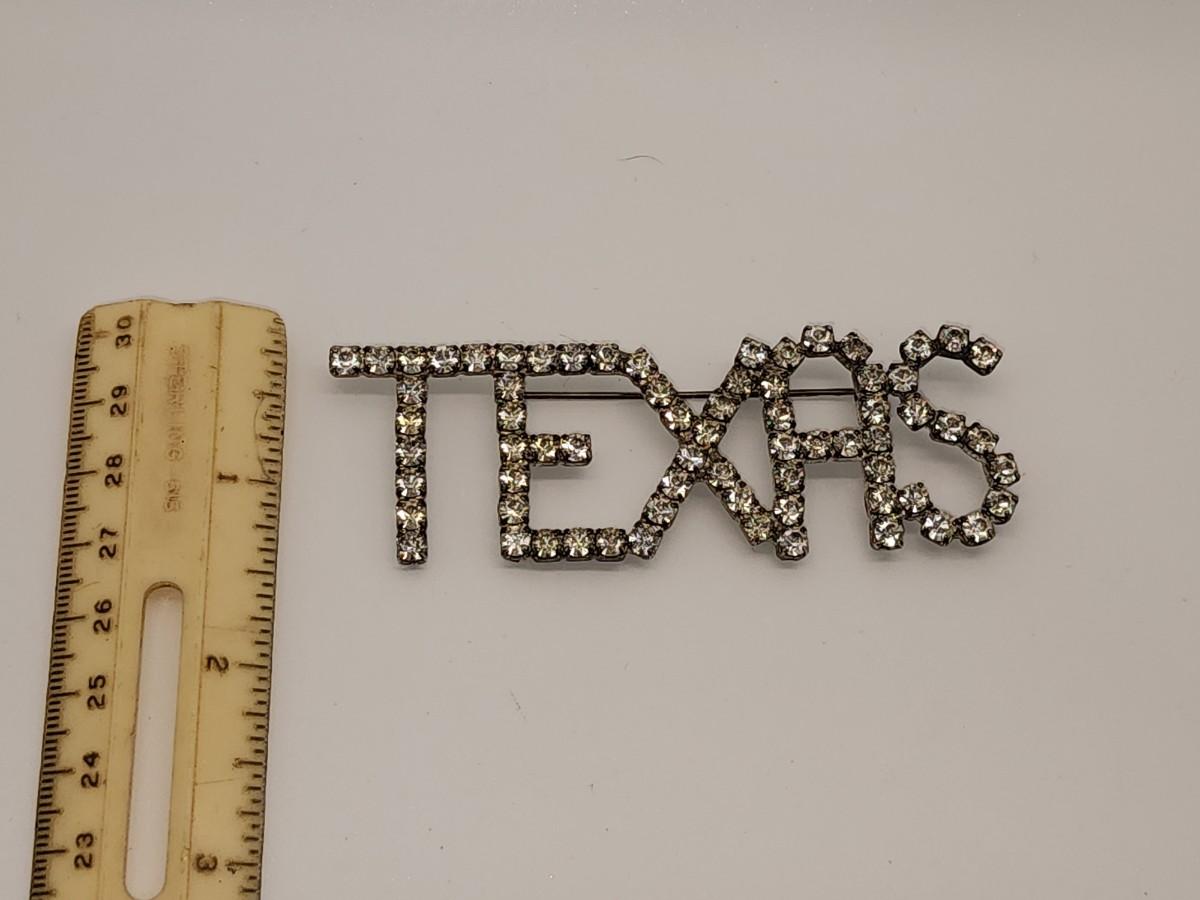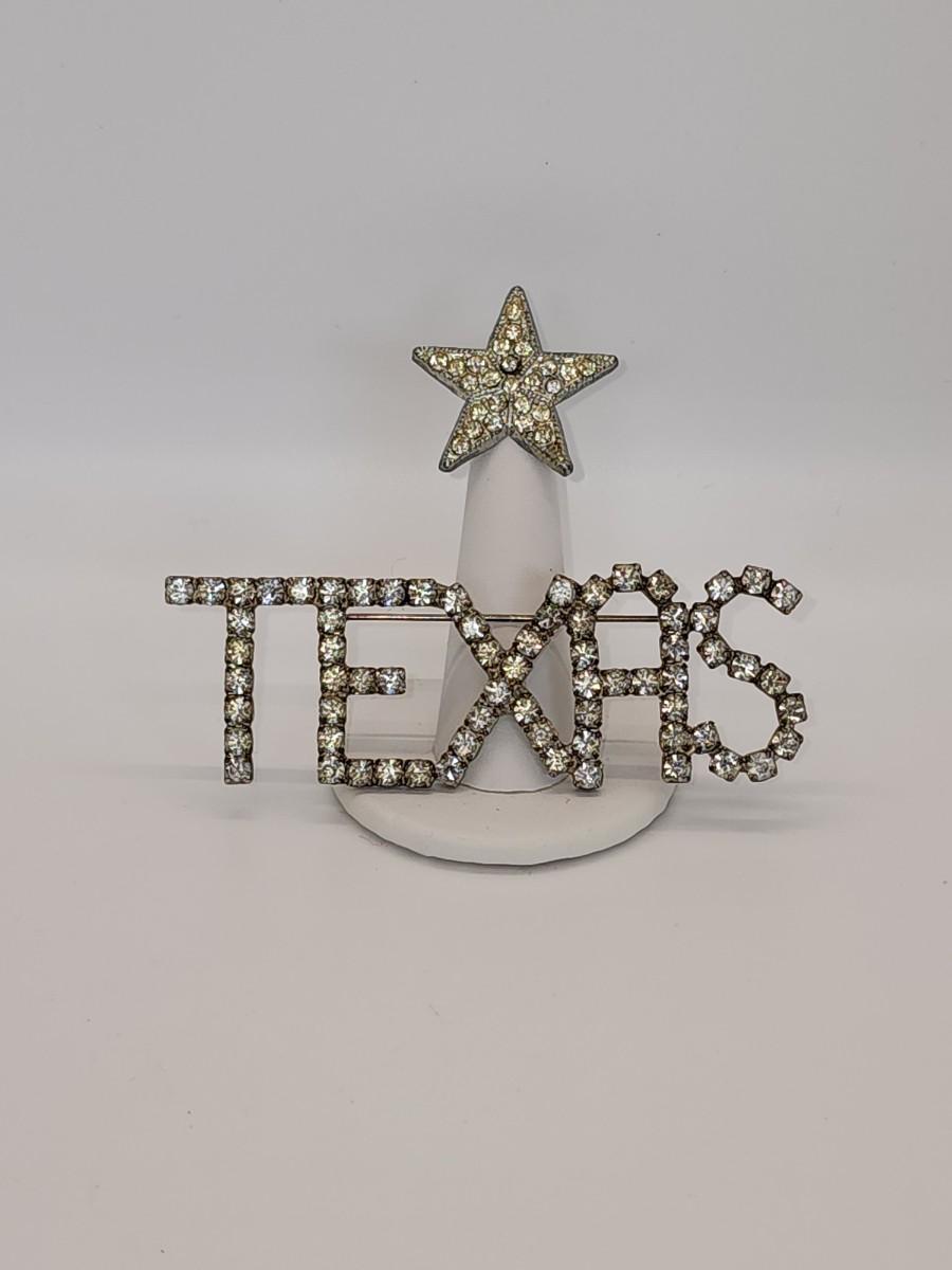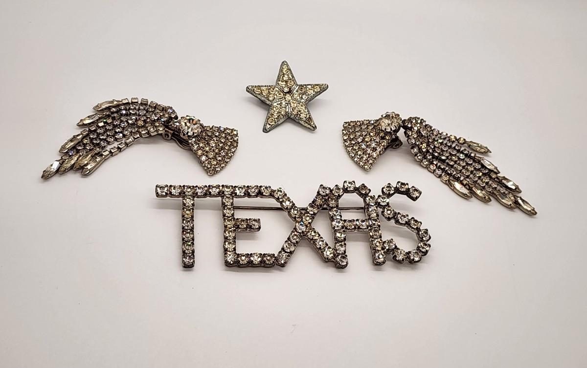 LOT 16 :: Rhinestone Lot- Huge Texas Brooch, Large pair Dangling clip-on Earrings and a lone Star Pin