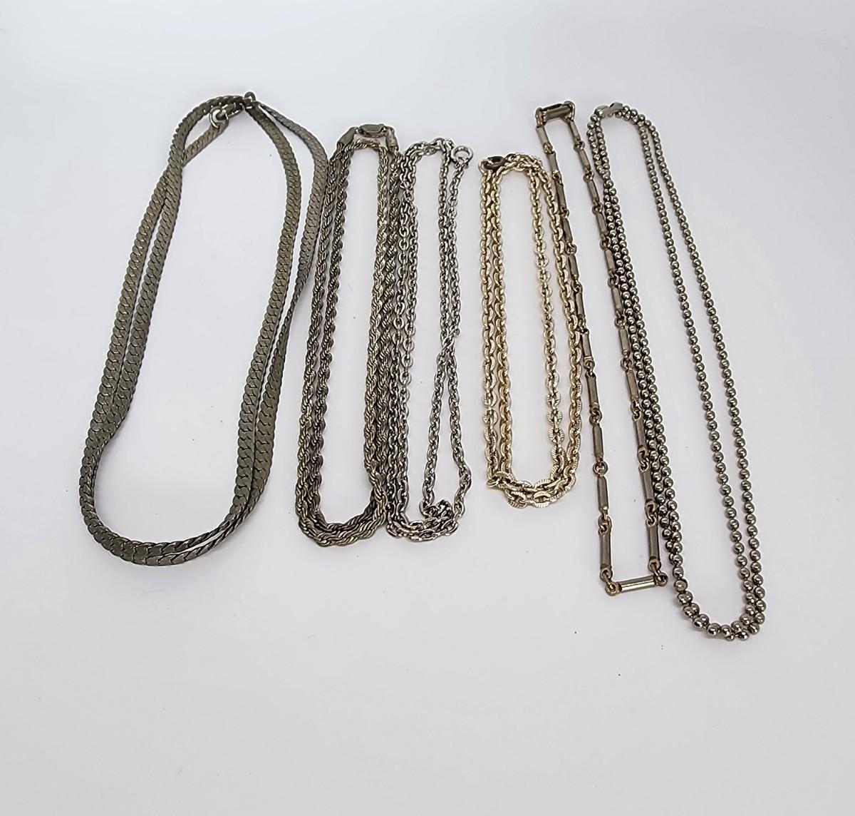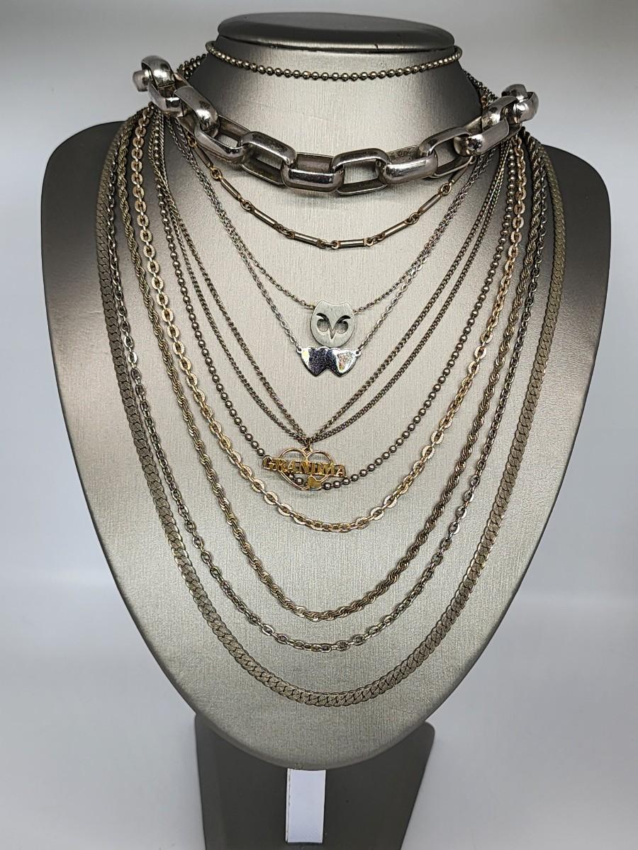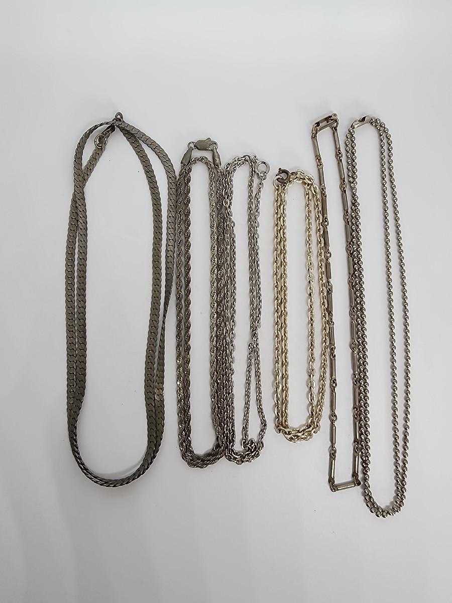 LOT 22:: Silvertone Necklace LOT Varying lengths 16"-30"L