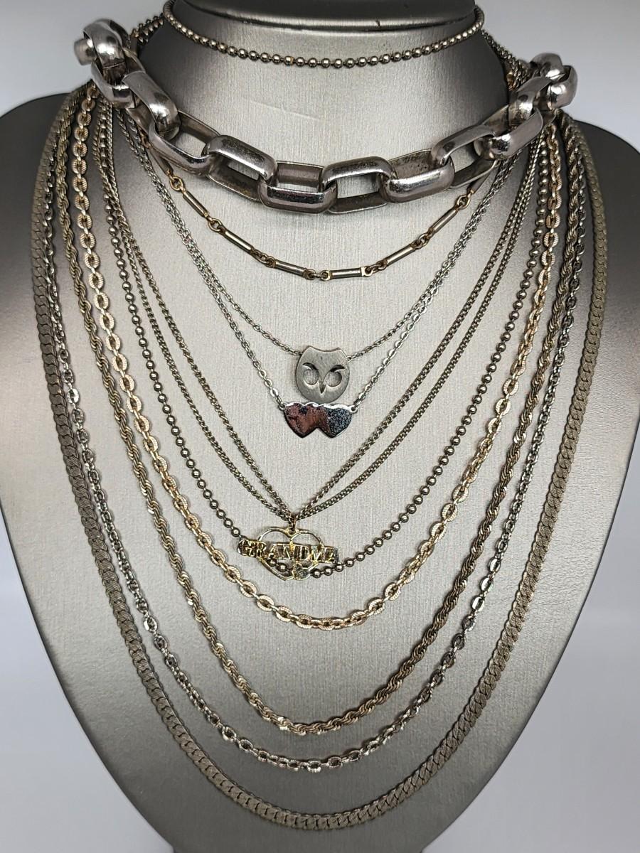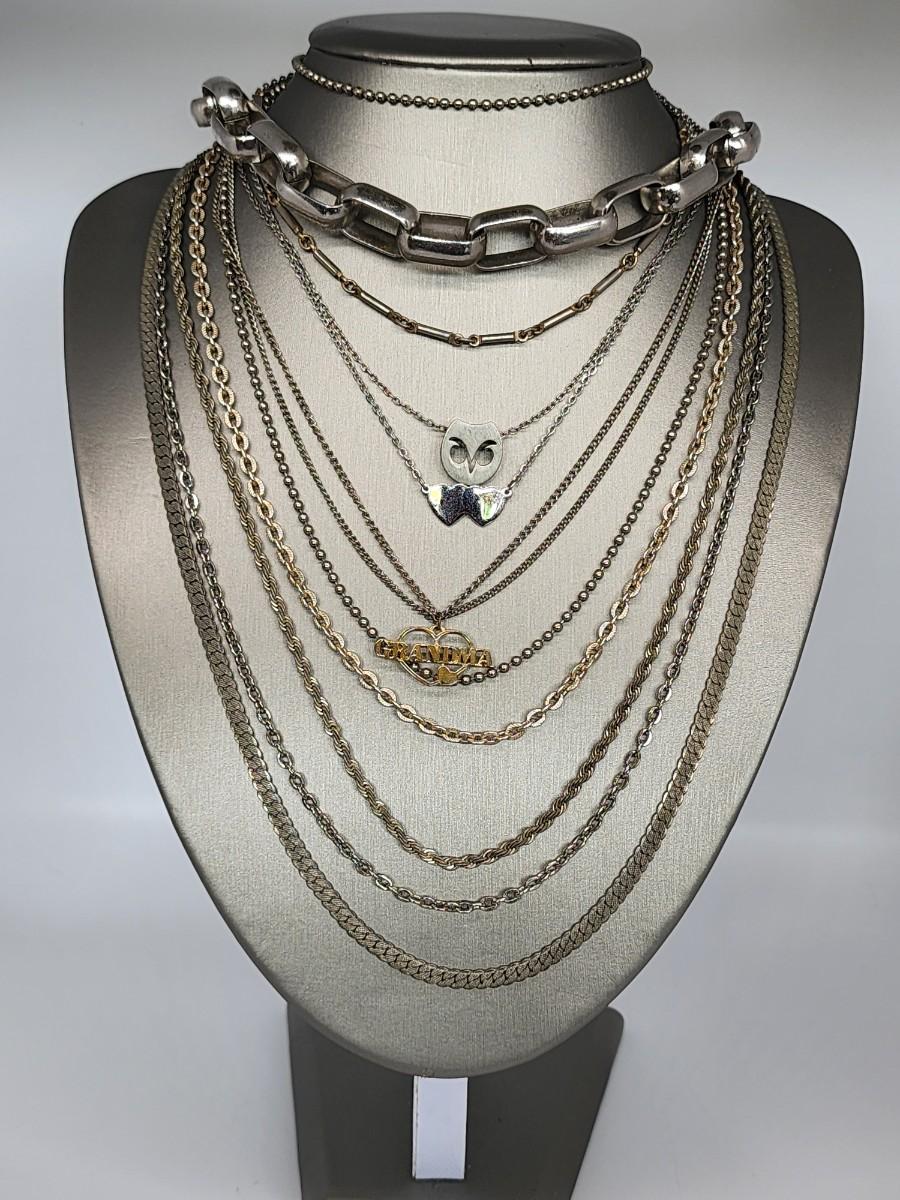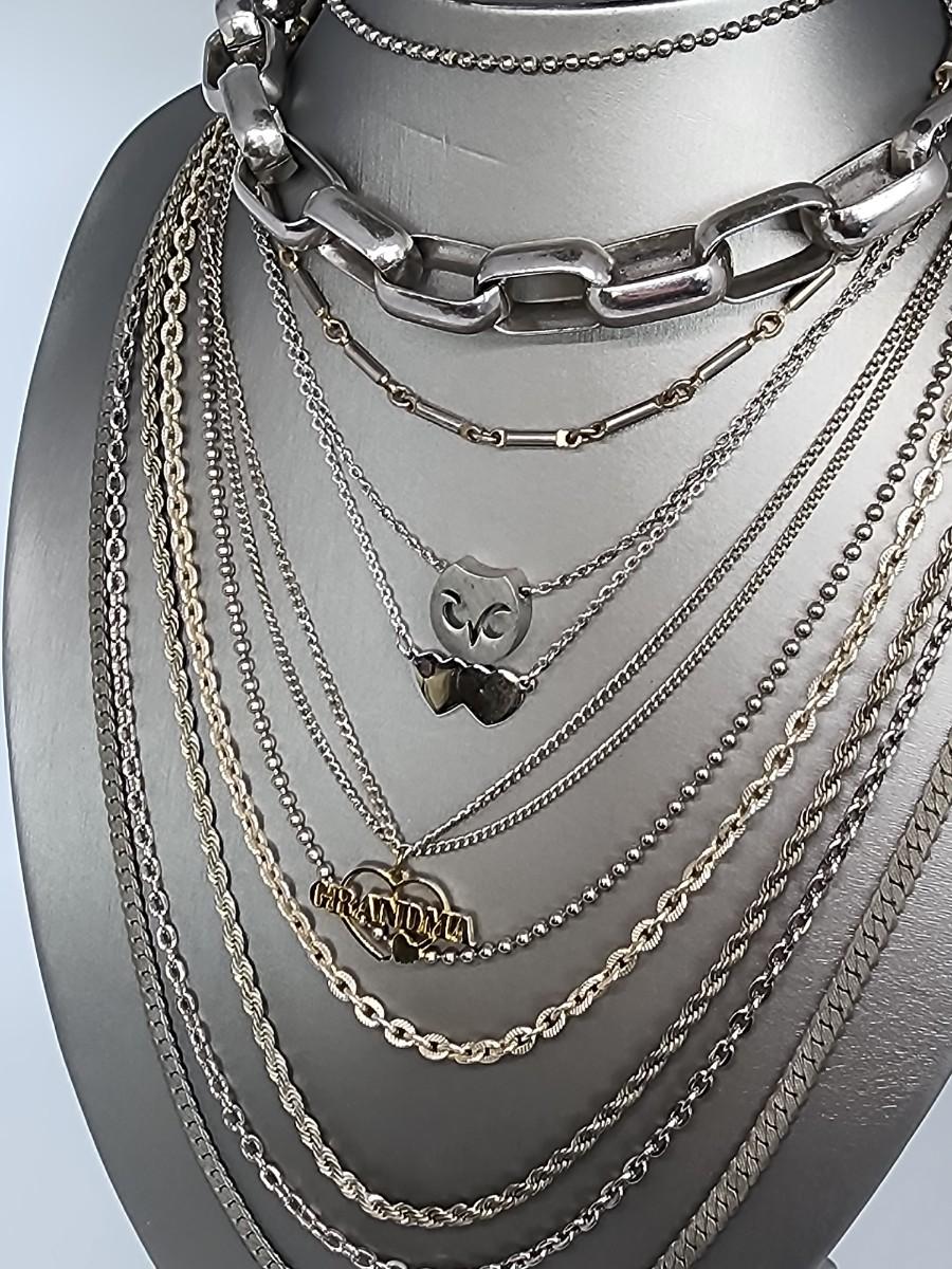 LOT 22:: Silvertone Necklace LOT Varying lengths 16"-30"L