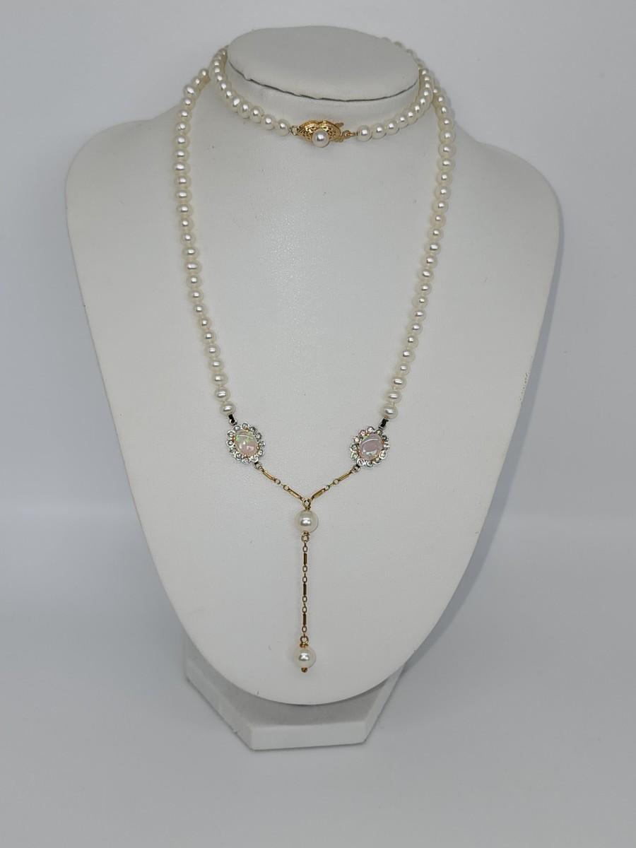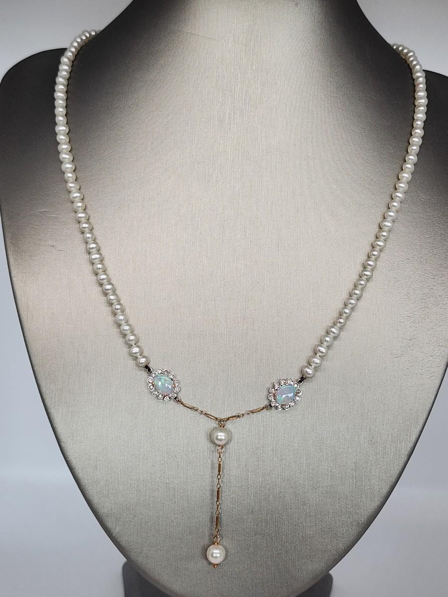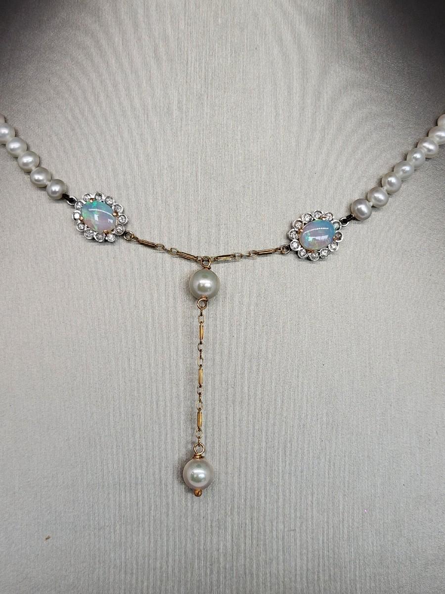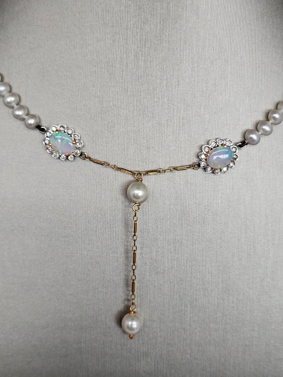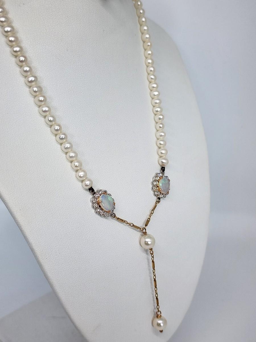 LOT 24:: 14k -Beautiful 22"L Strand of Cutured Pearls Accented by Opals and Diamonds & 14k gold