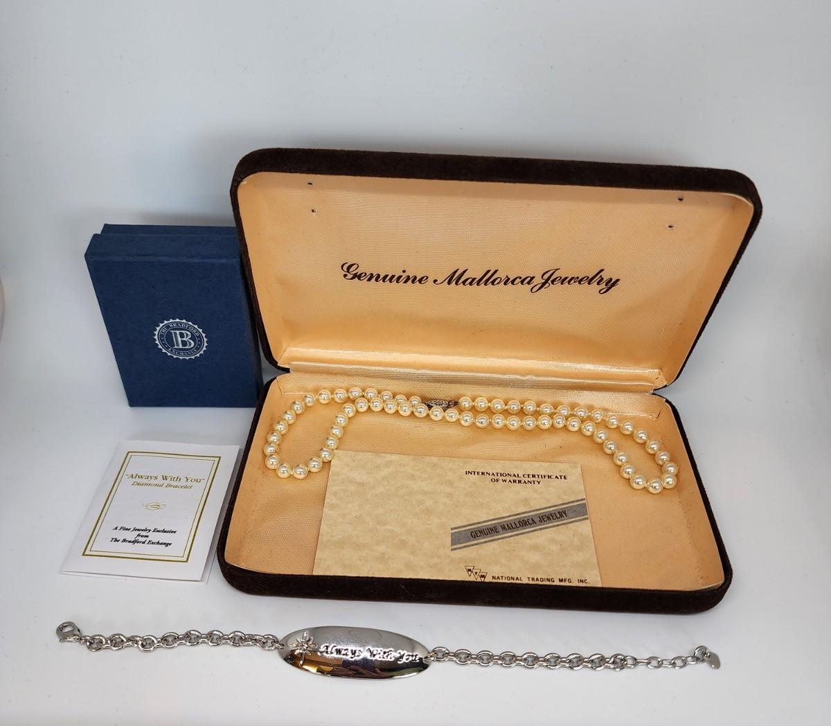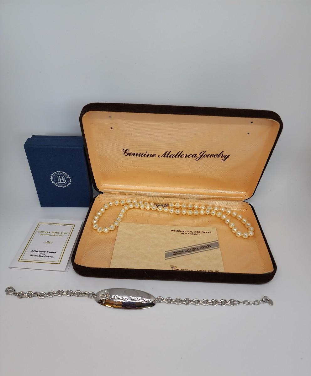 LOT 26:: Bradford Exchange ALWAYS WITH YOU DIamond Bracelet and Mallorca Simulated Glass Pearls sterling clasp