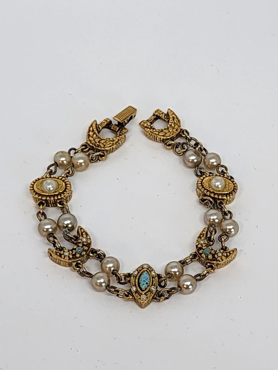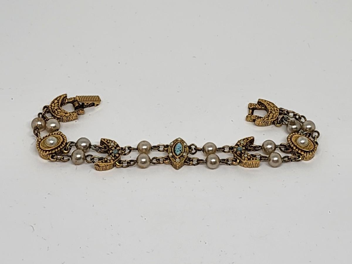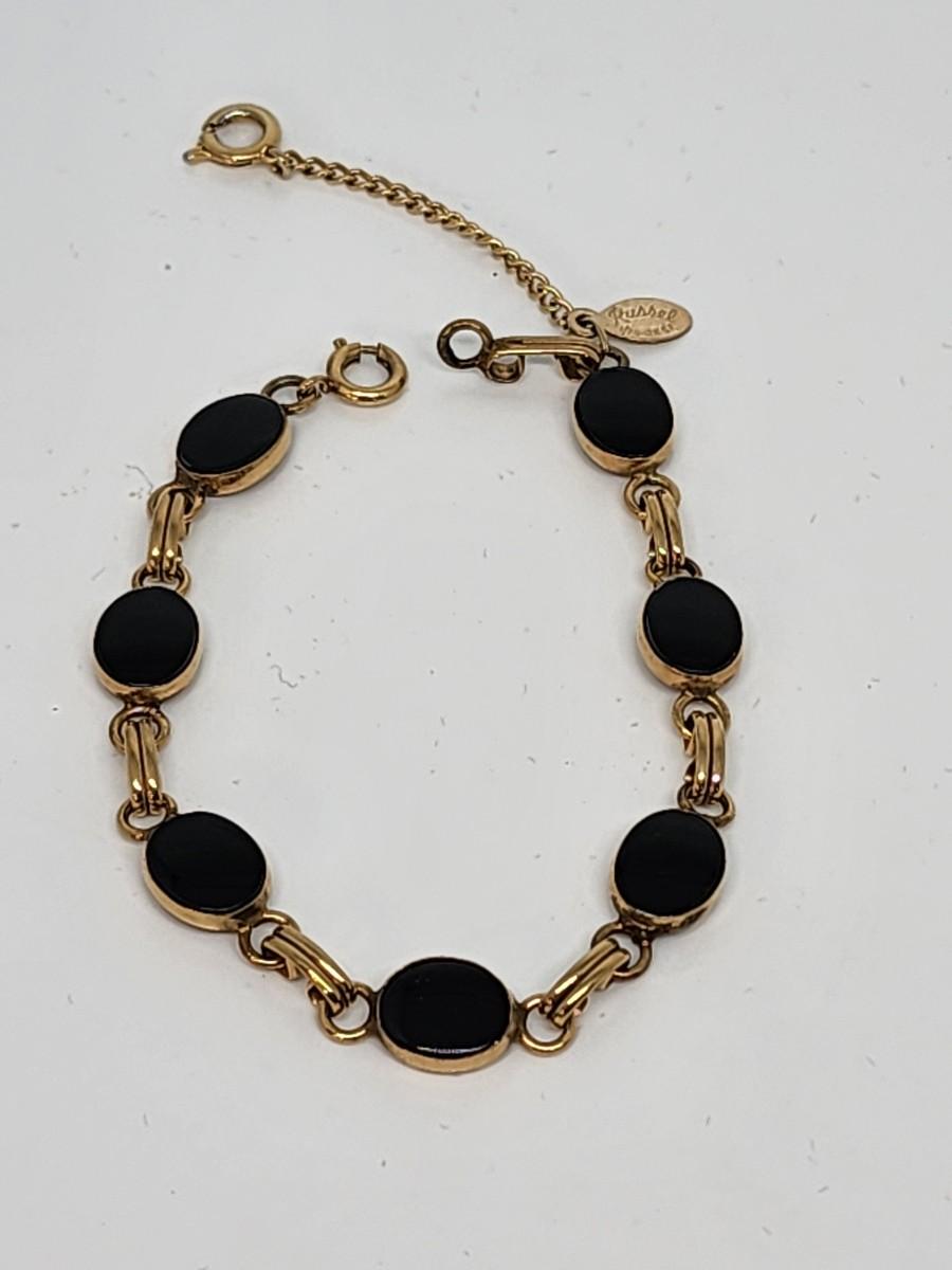 LOT 28:: Vintage Goldette bracelet, Vintage Russell Goldfilled onyx bracelet, New Butterfly Watch and more