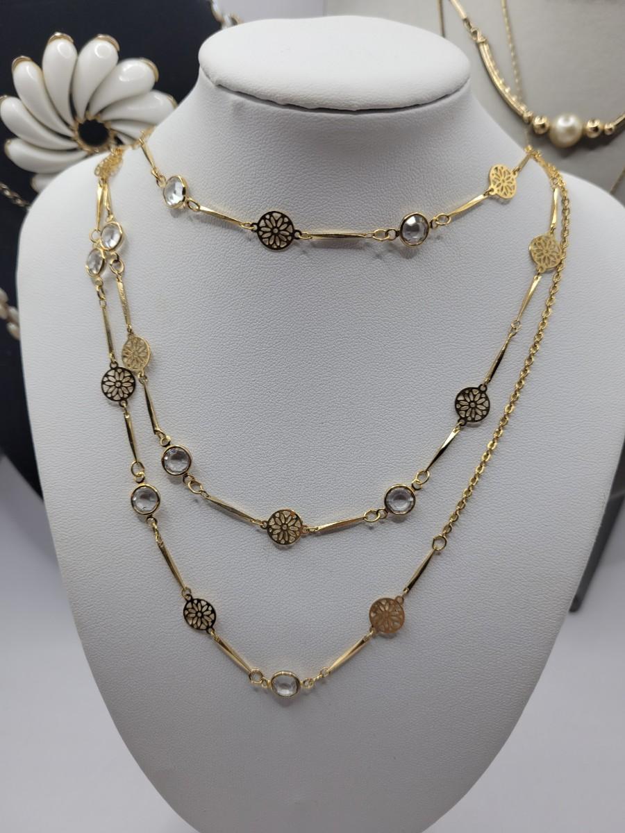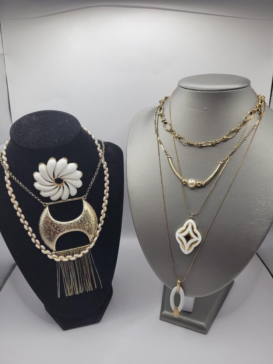 LOT::36 Gold Tone & White Necklace & Brooch Lot