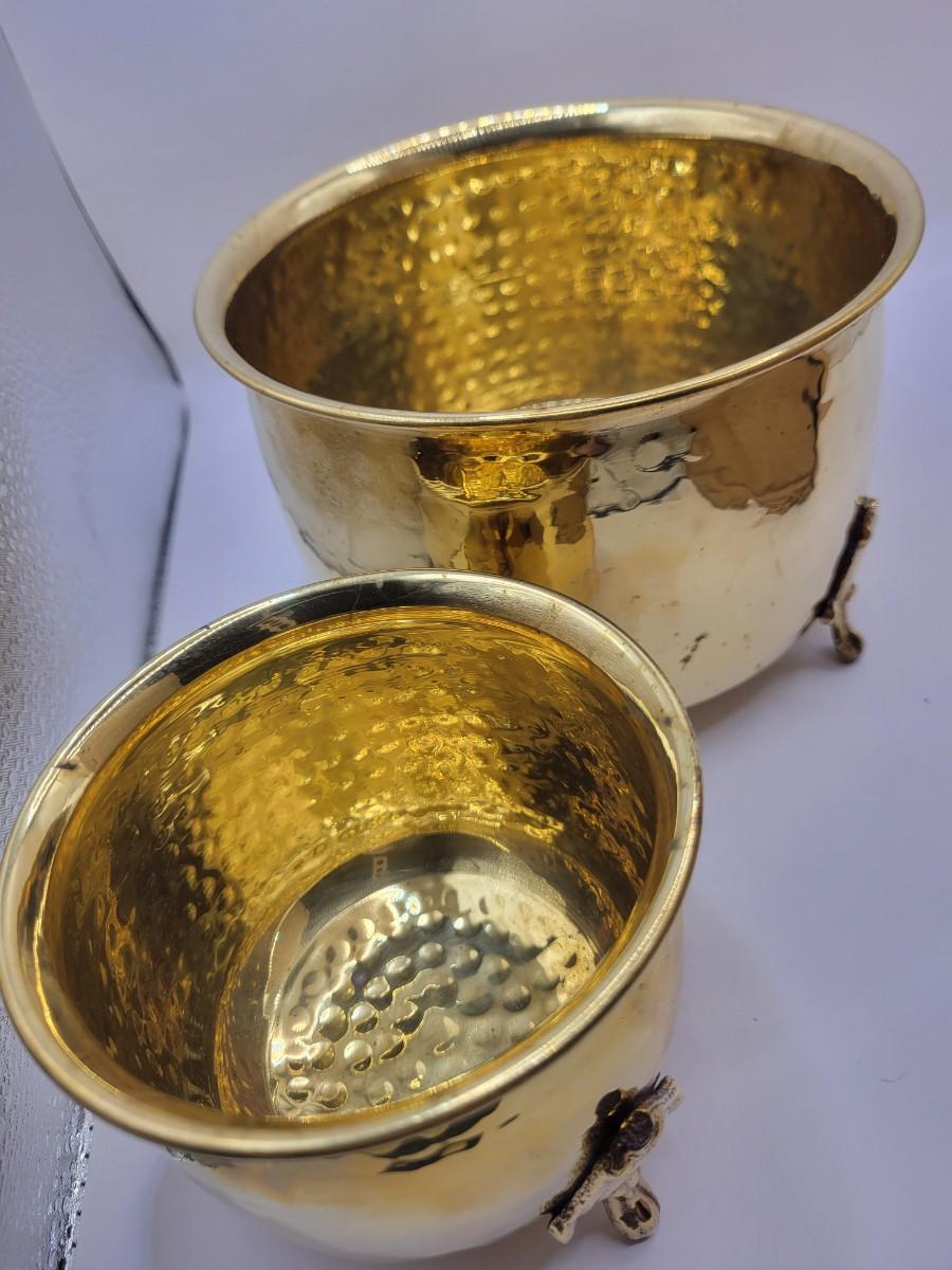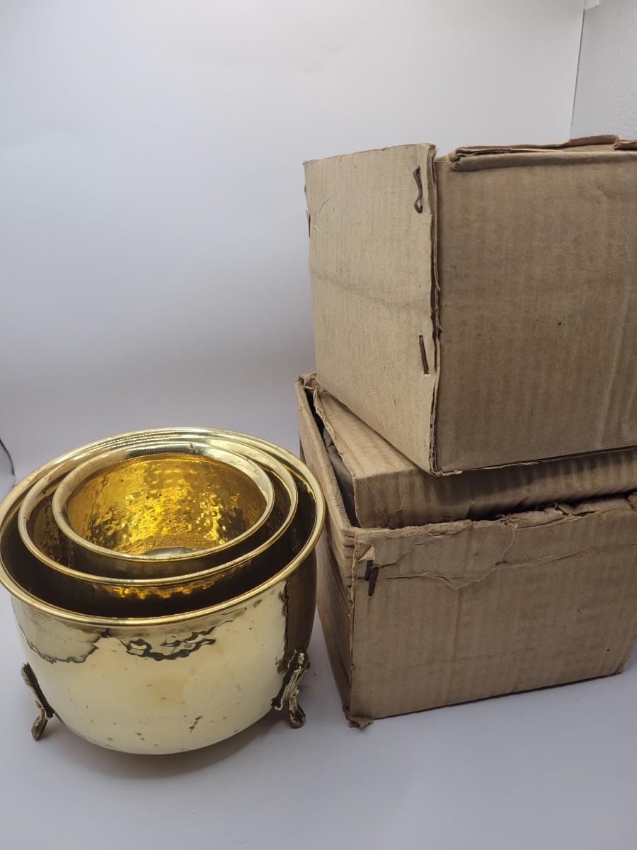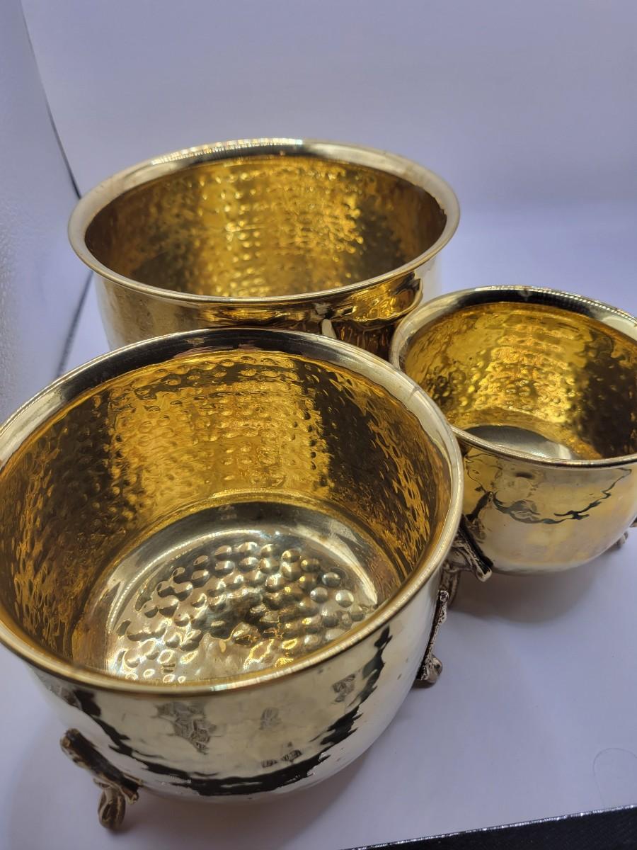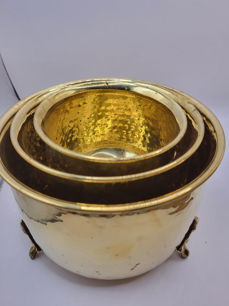 LOT:: 81 Three Sets of Hammered Brass Nesting Bowl Planters (1 set has 2)
