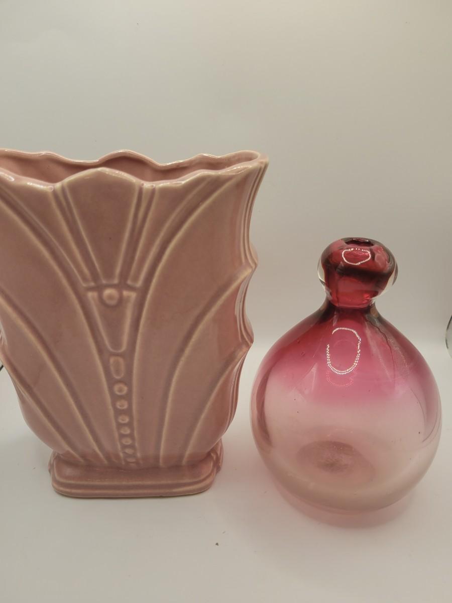 LOT:: 84 McCoy Pink Pottery Vase 551 USA Art Deco & Art Glass Bud Vase