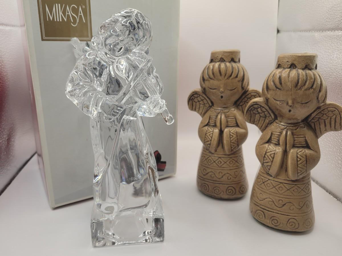 LOT:: 87 Mikasa Angel Violinist & Lefton Angel Candle Holders