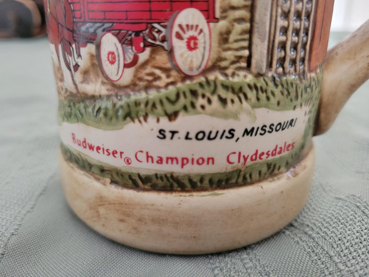 LOT:: 111 VINTAGE BUDWEISER GRANT'S FARM CLYDESDALES STEIN 1976 CERAMARTE RARE
