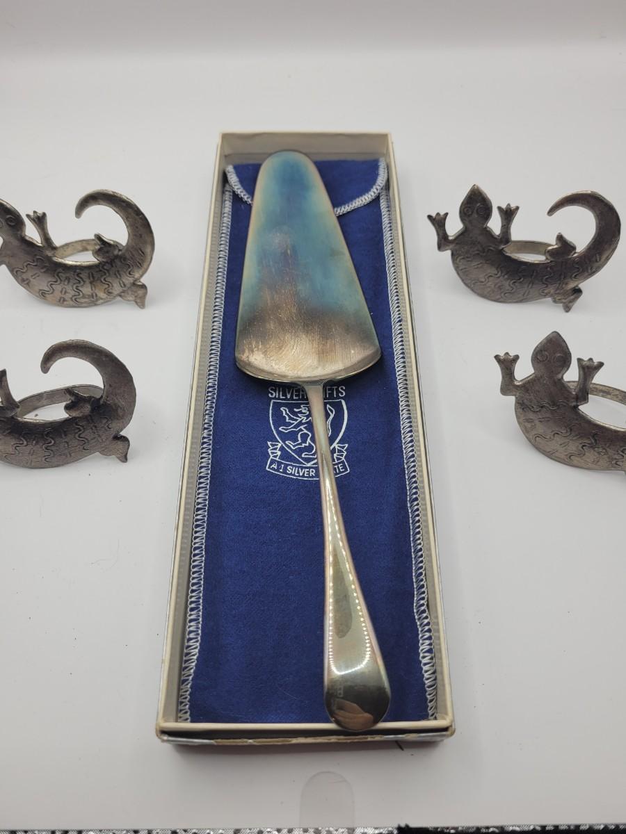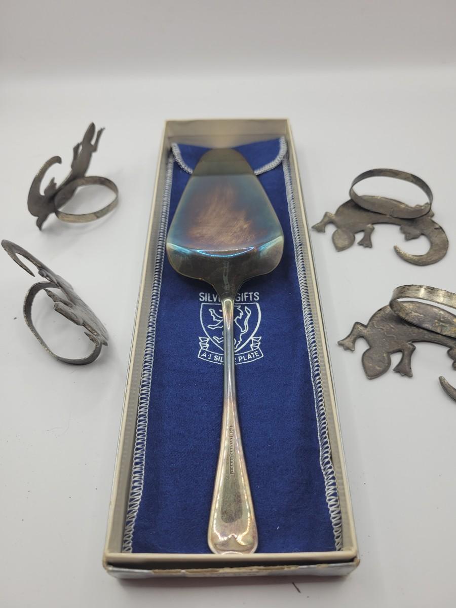 LOT:: 136 SilverGifts A1 SP Pie Server + Four Gecko Napkin Holders