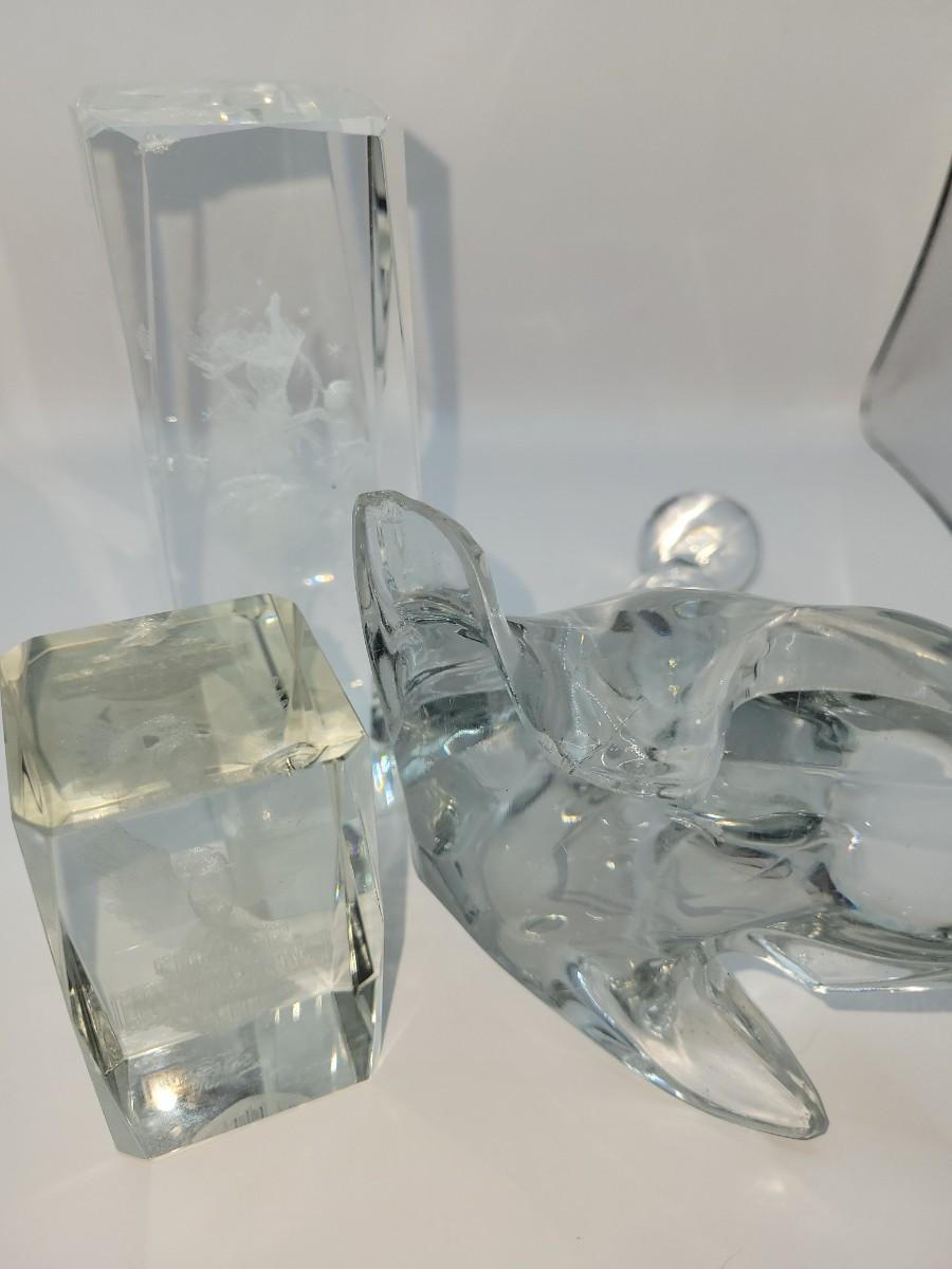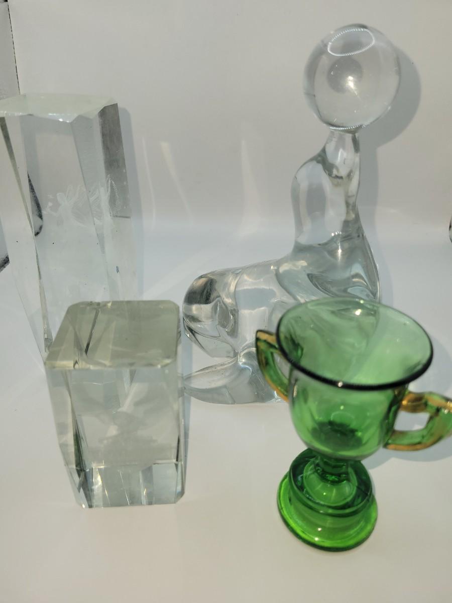 LOT:: 139 Four Misc Glass Pieces, each has a mild imperfection except Trophy. Check pictures.