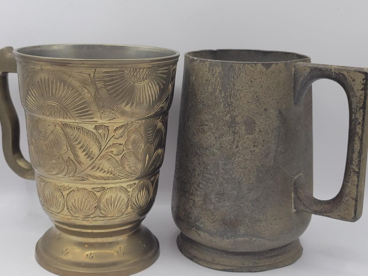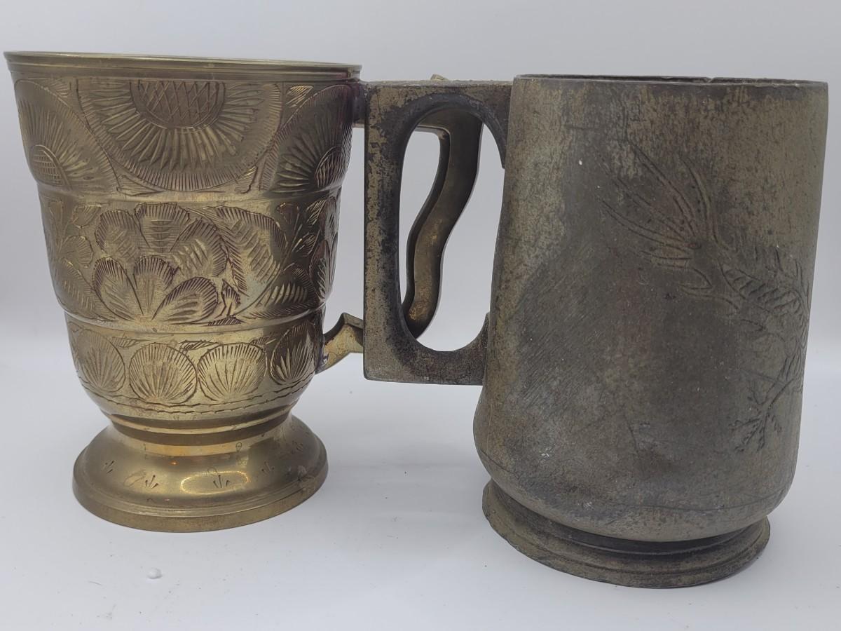 LOT:: 162 Etched Brass Mug & Etched Dragon Pewter Swatow Mug