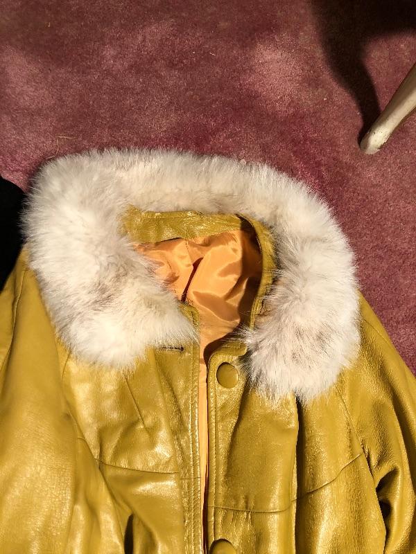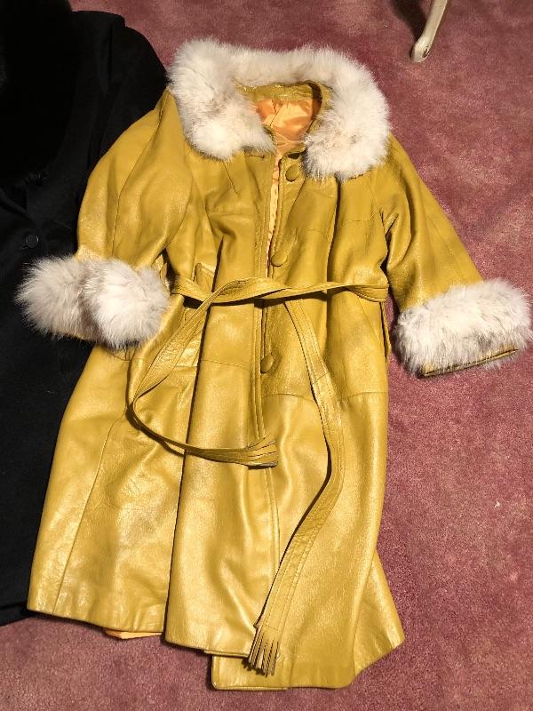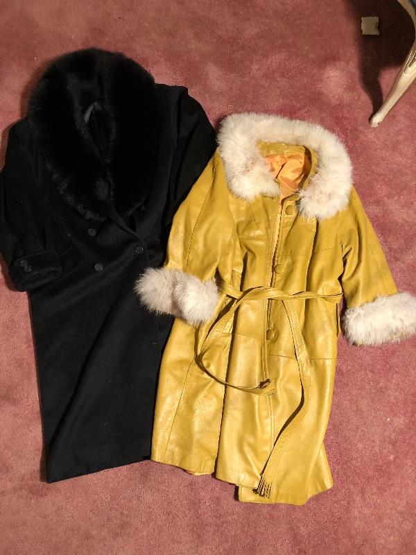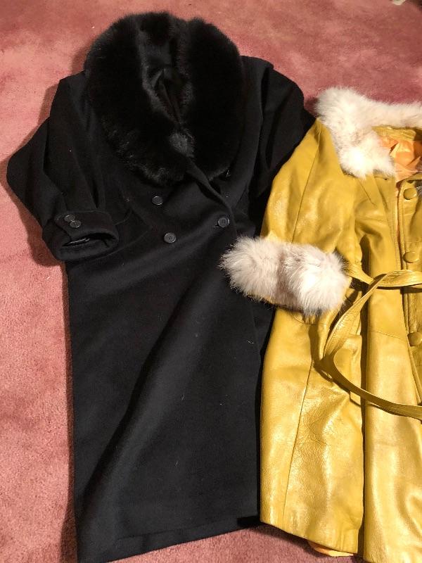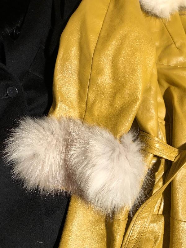 Black Wool Coat w/Mink Trim? by Gemini & Mustard Colored Leather Jacket with Fox Fur?