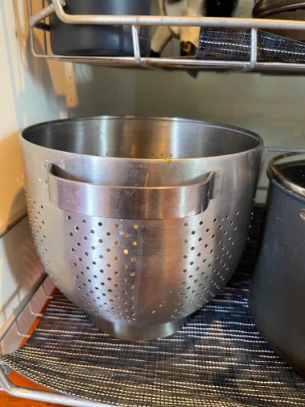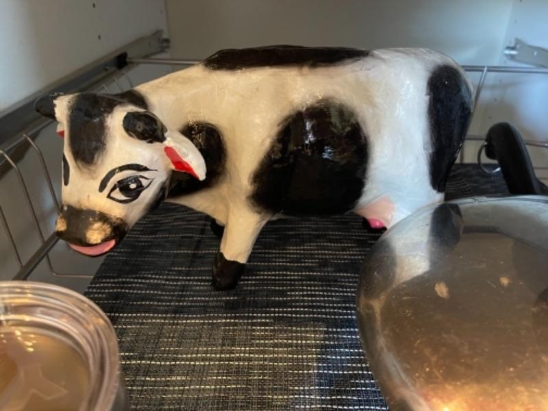 Lot 103K. Emeril stock pot, colander, papier mache cow, oven mitt, placemats“” $22.50
