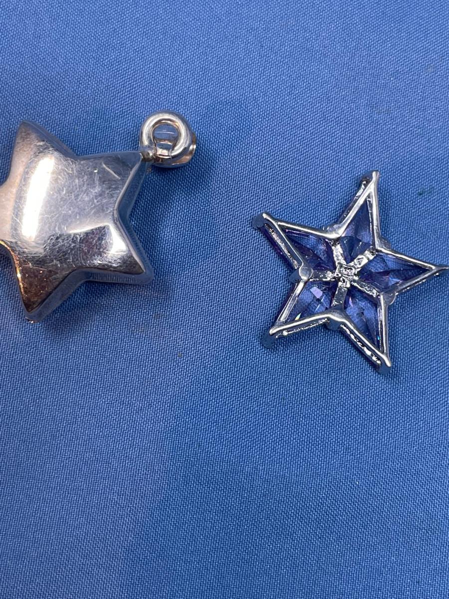 The one has alexandrite czs. The other is hollow. 13.2 grams total weight.