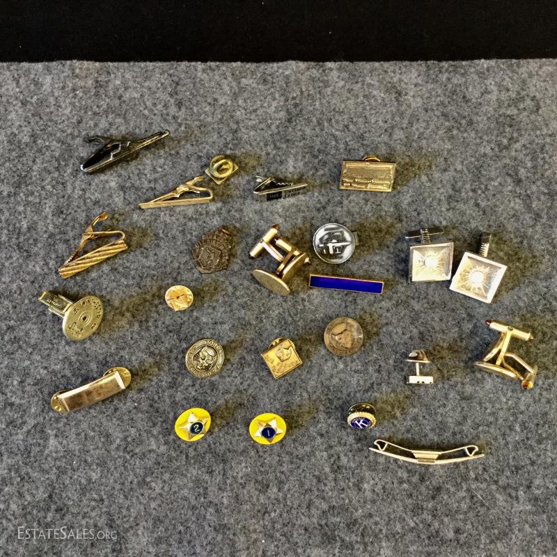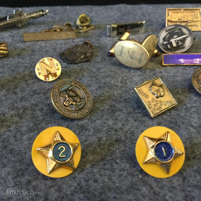 Lot 104- Pins, Medals, Cuff Links, Buttons and More