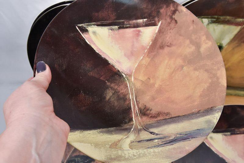 Set an elegant table with these wine inspired plates and coordinating gold chargers.