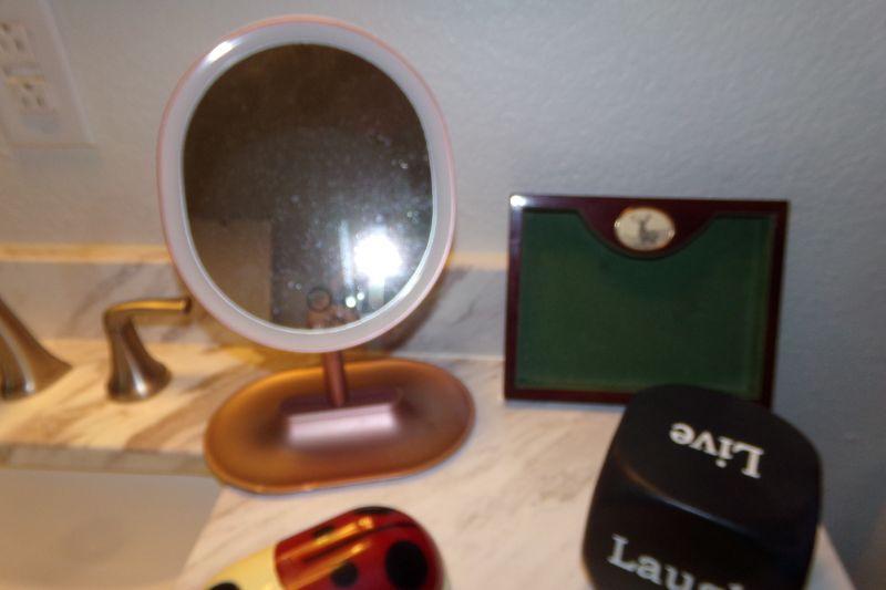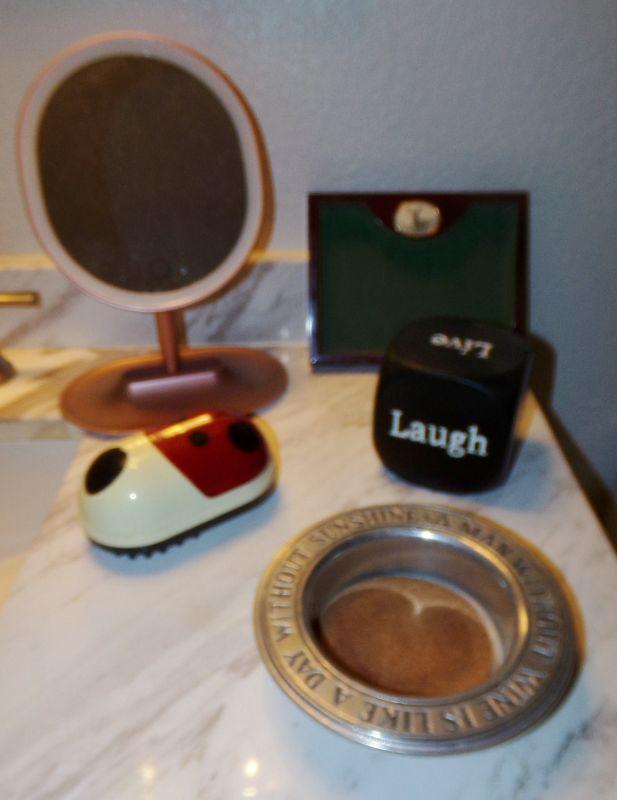 LED LANTERN LIGHT, FREESTANDING MIRROR, MASSAGER, ROLL THE DICE, 2 TRINKET OF COIN DRESSER TOP HOLDERS