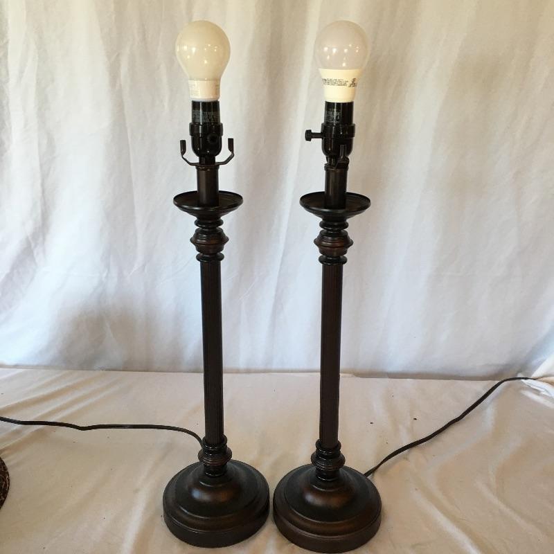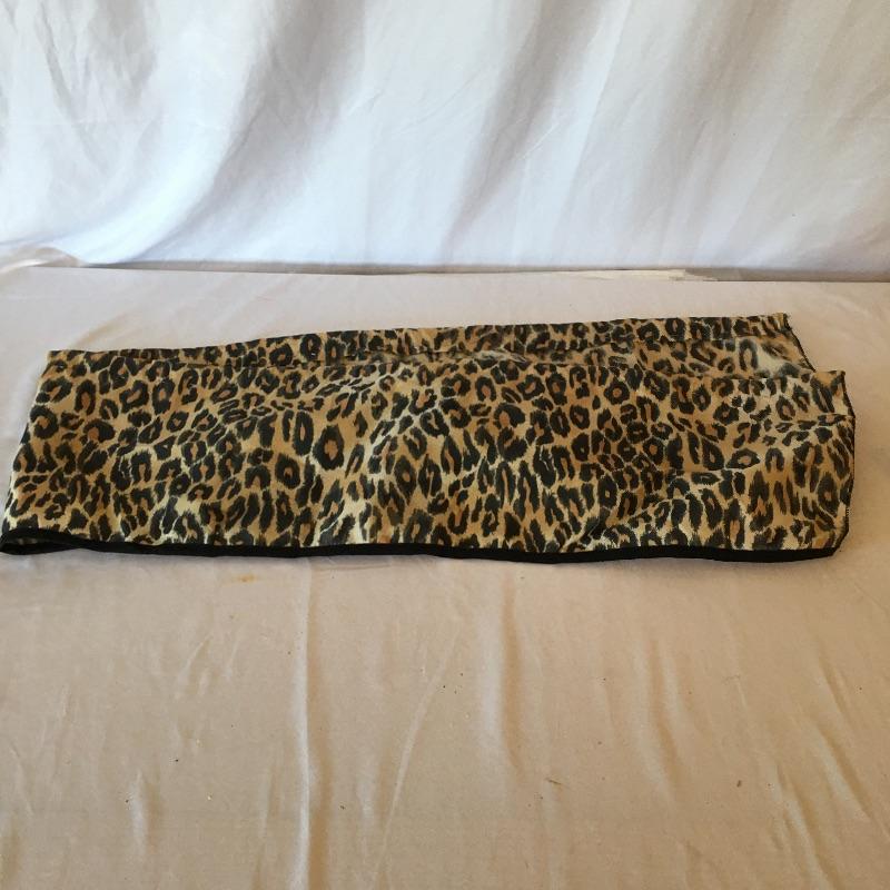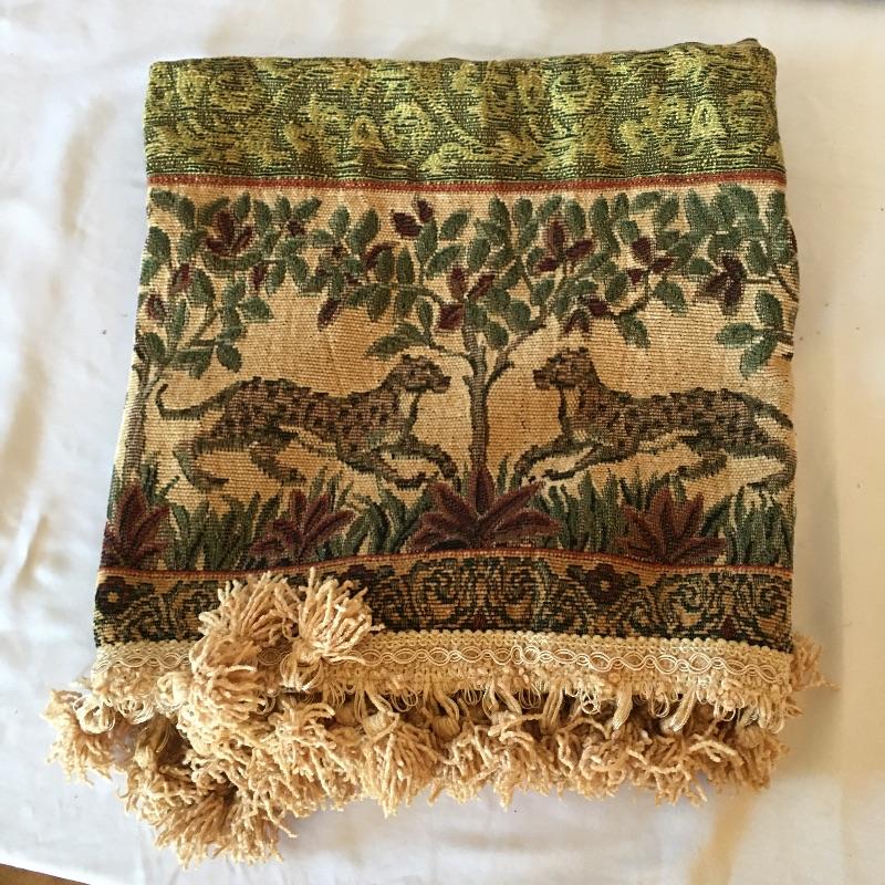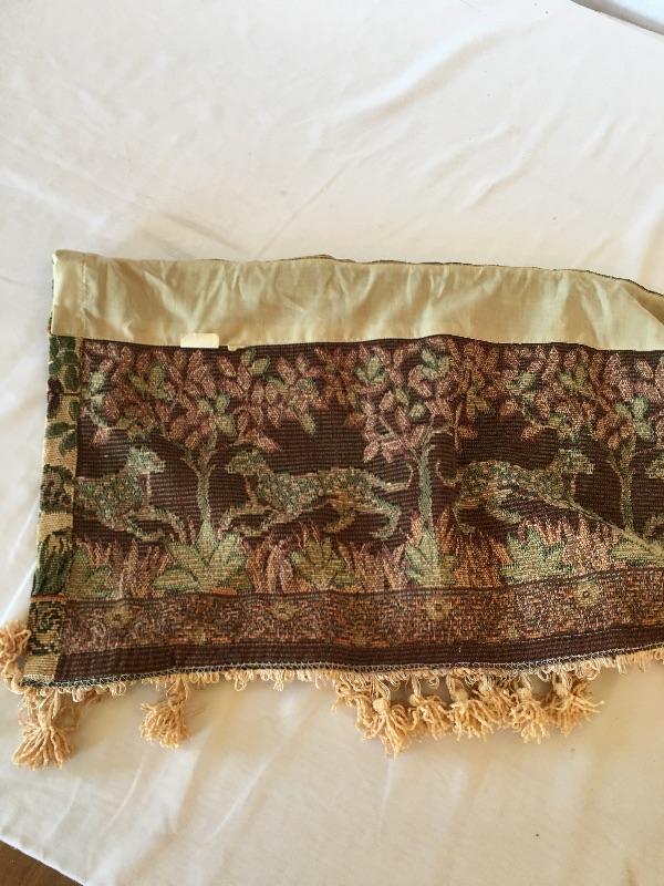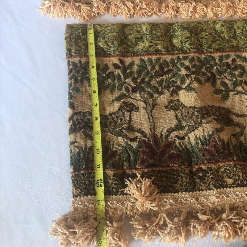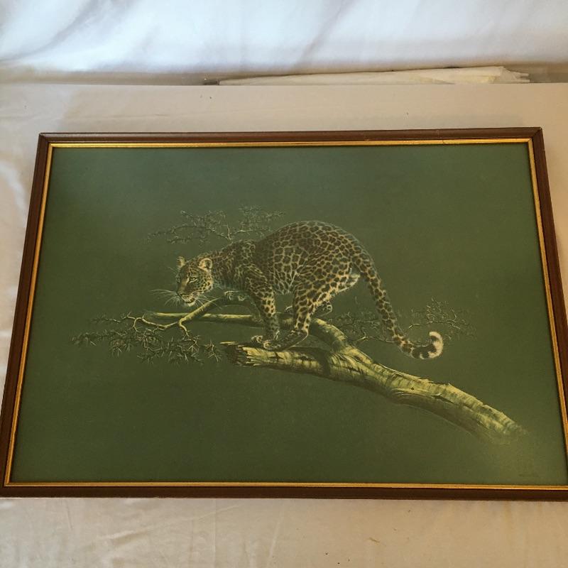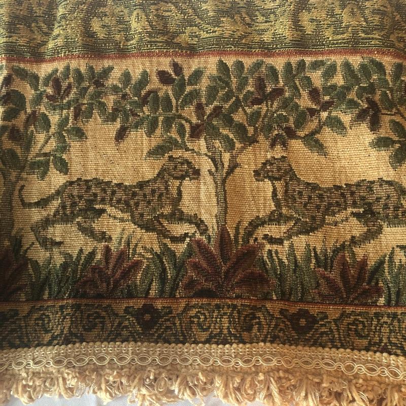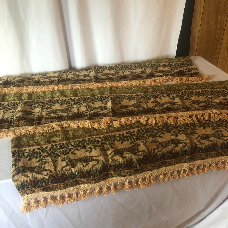 This leopard print collection includes two barstools, two table lamps, Kim Brooks framed print and a three piece valance. Welcome to the jungle with this ferocious collection. Barstools measure 19” x 19” x 43” with a 29” seat height. Each valance is approximately 50” x 13” (not including tassels). One leopard valance may be missing one or two tassels.