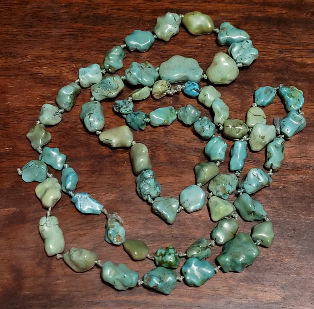 Lot 104: Vintage 32" Hand Knotted Turquoise Necklace