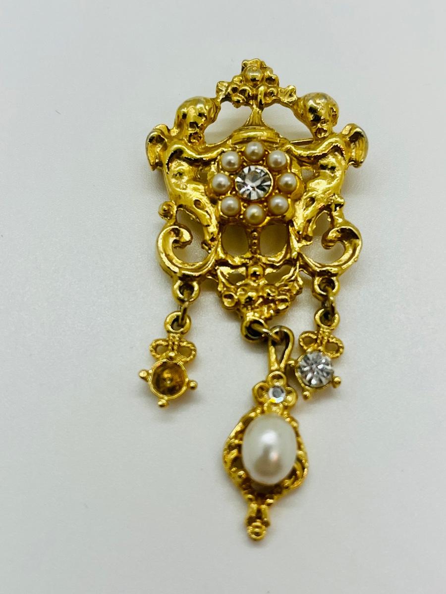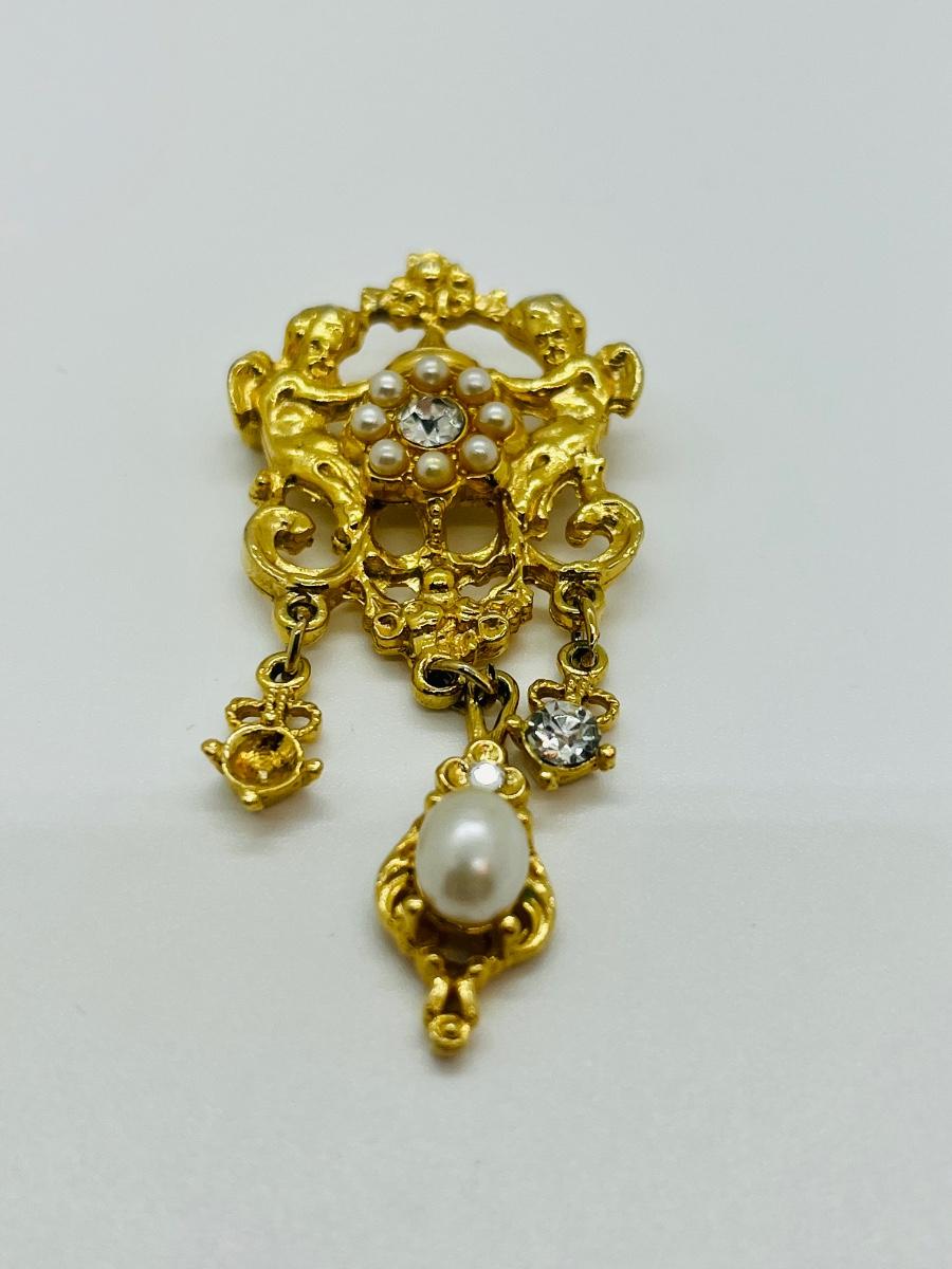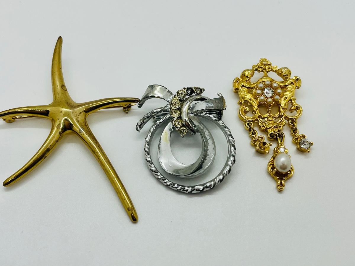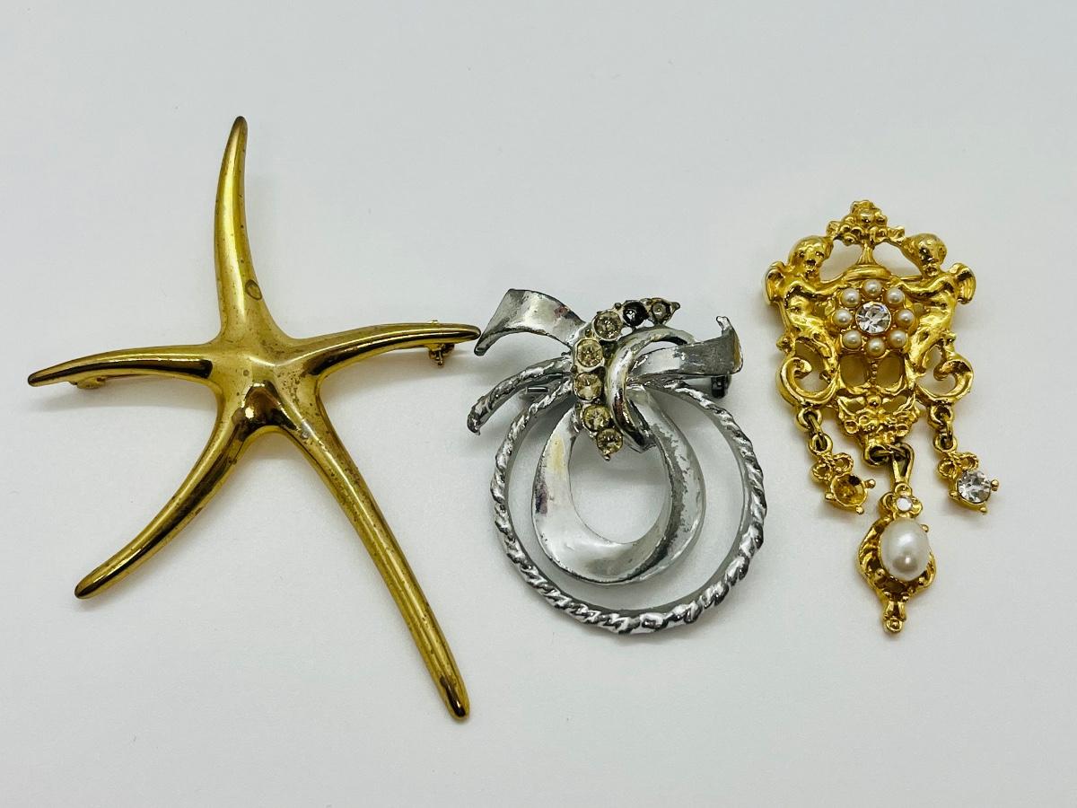 Silvertone and Cherub brooches each are missing one rhinestone. The pictures show condition, measurements if taken, and what is included in the lot. Due to the large amount that we photograph and the time frame, we are not always able to take measurements. All items unless noted, are pre-owned and have been used, and are untested. Thank you