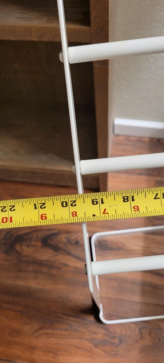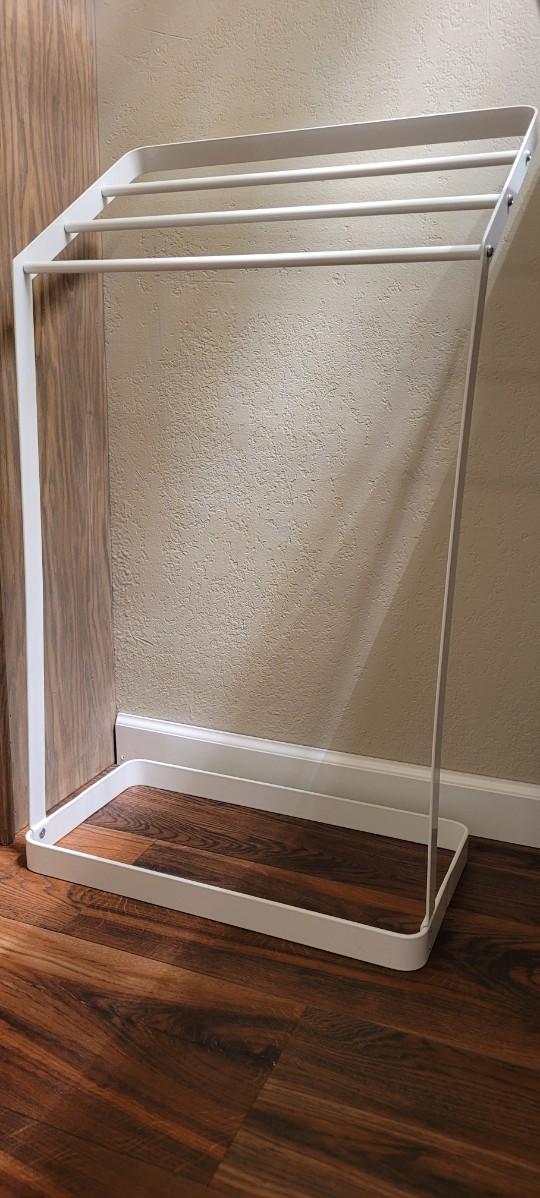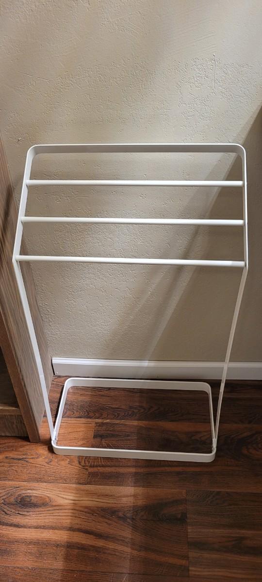 White Metal Towel Holder that can be used anywhere that towels need to be stored.