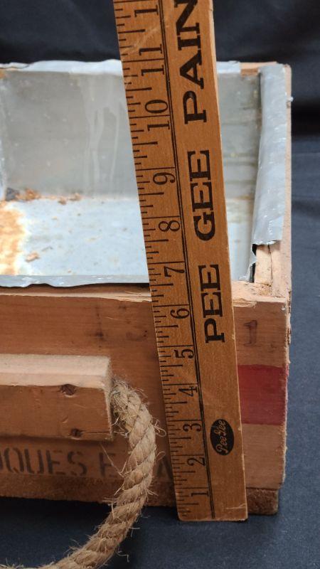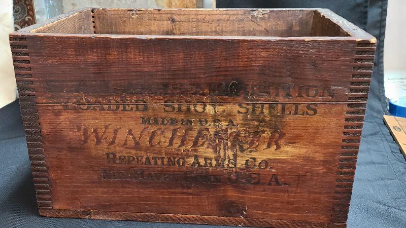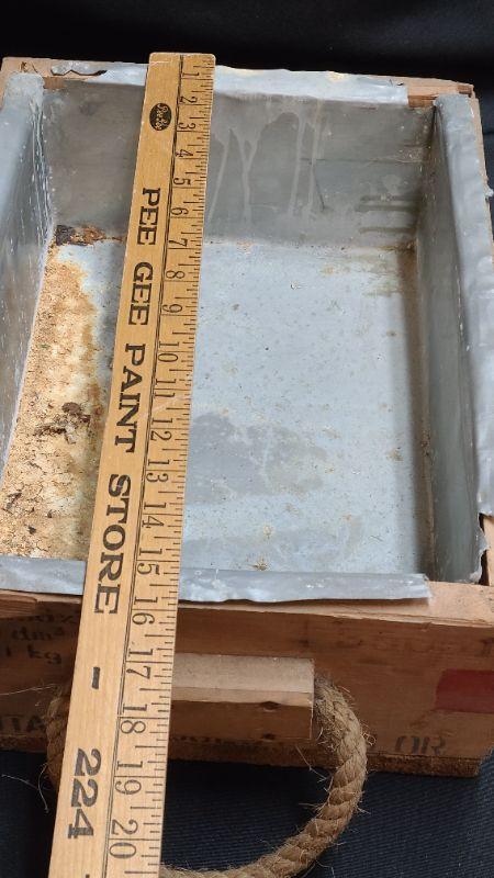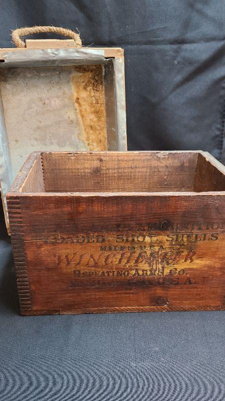Winchester wood crate for ammo and tin lined cartridge storage with rope handles! Decor marvels! Please see all pictures for measurements, condition of the item/s, and the contents if listed as a lot. Pictures are the best representation of the item. Thank you for looking and have fun bidding! We appreciate our Treasure Hunters!