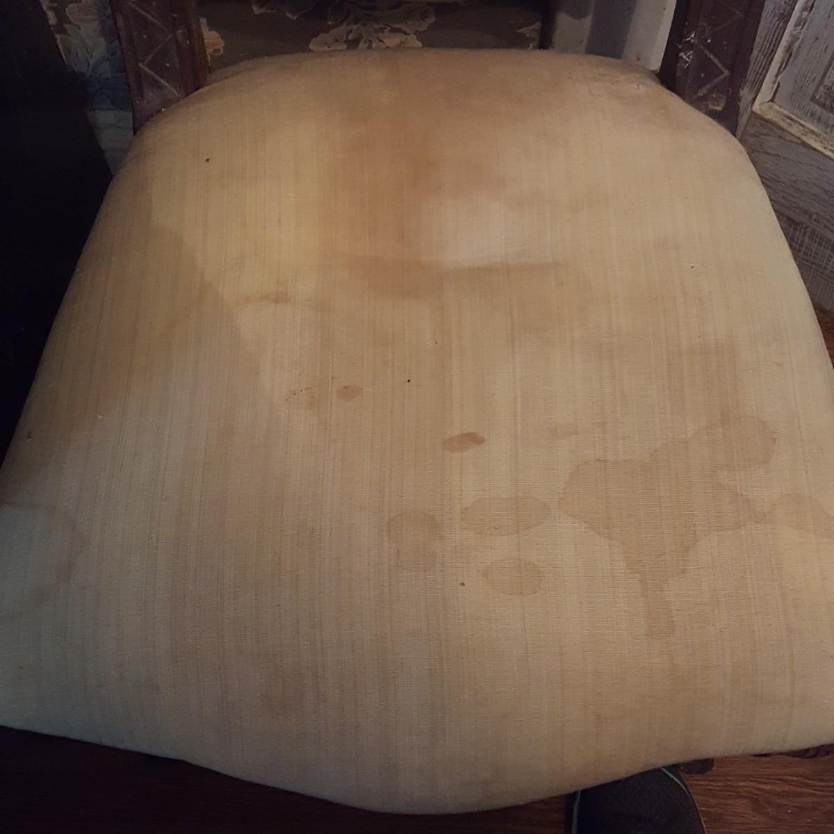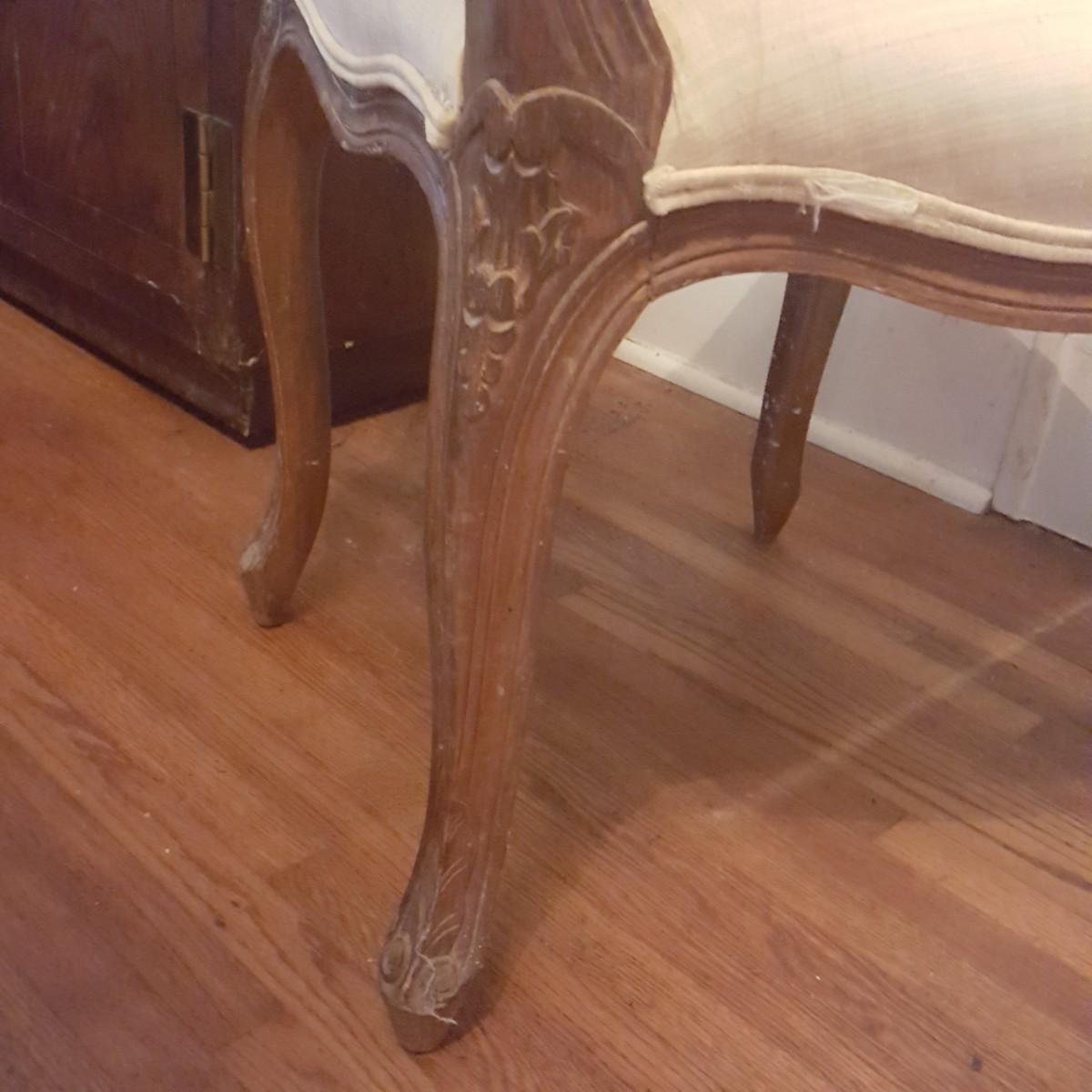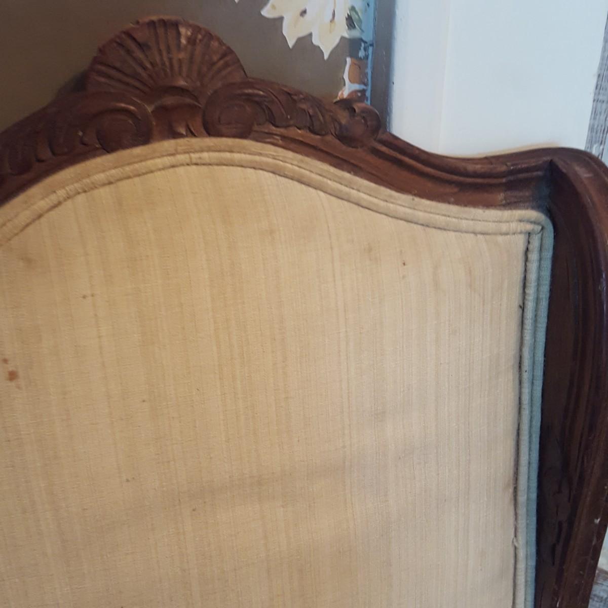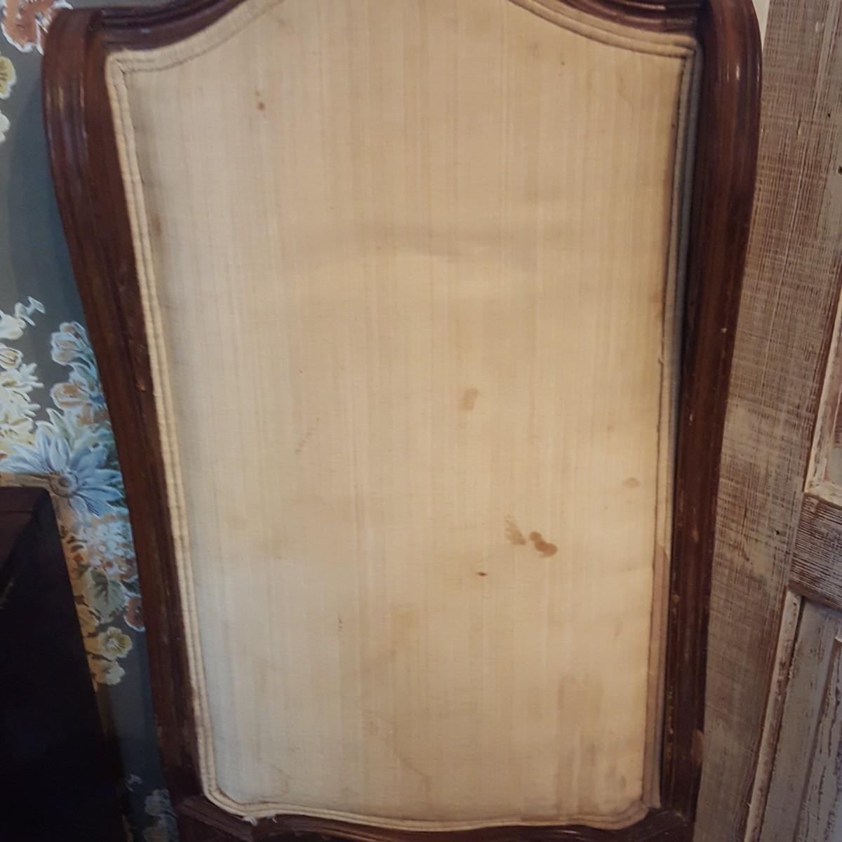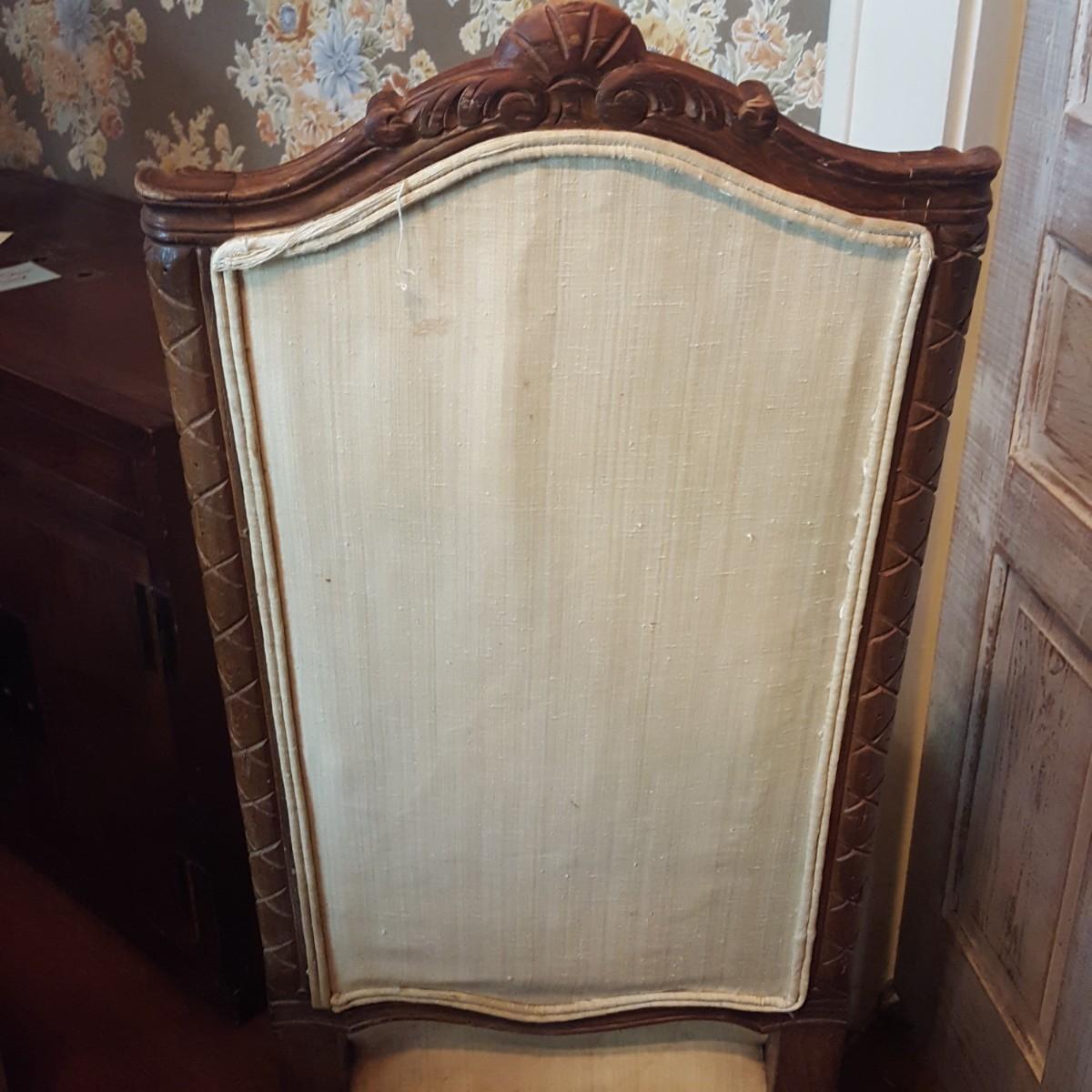 This lot contains a beautiful wooden chair carved with details! The chair measures 17x20x44 inches. The seat is 18 inches off the ground. The upholstery in highly stained, but could be replaced to enhance this unique chair. The mirror with a goldish finish measures 1 1/4x18x22 inches and would look beautiful above a mantel or by your front door! Local pick up only.