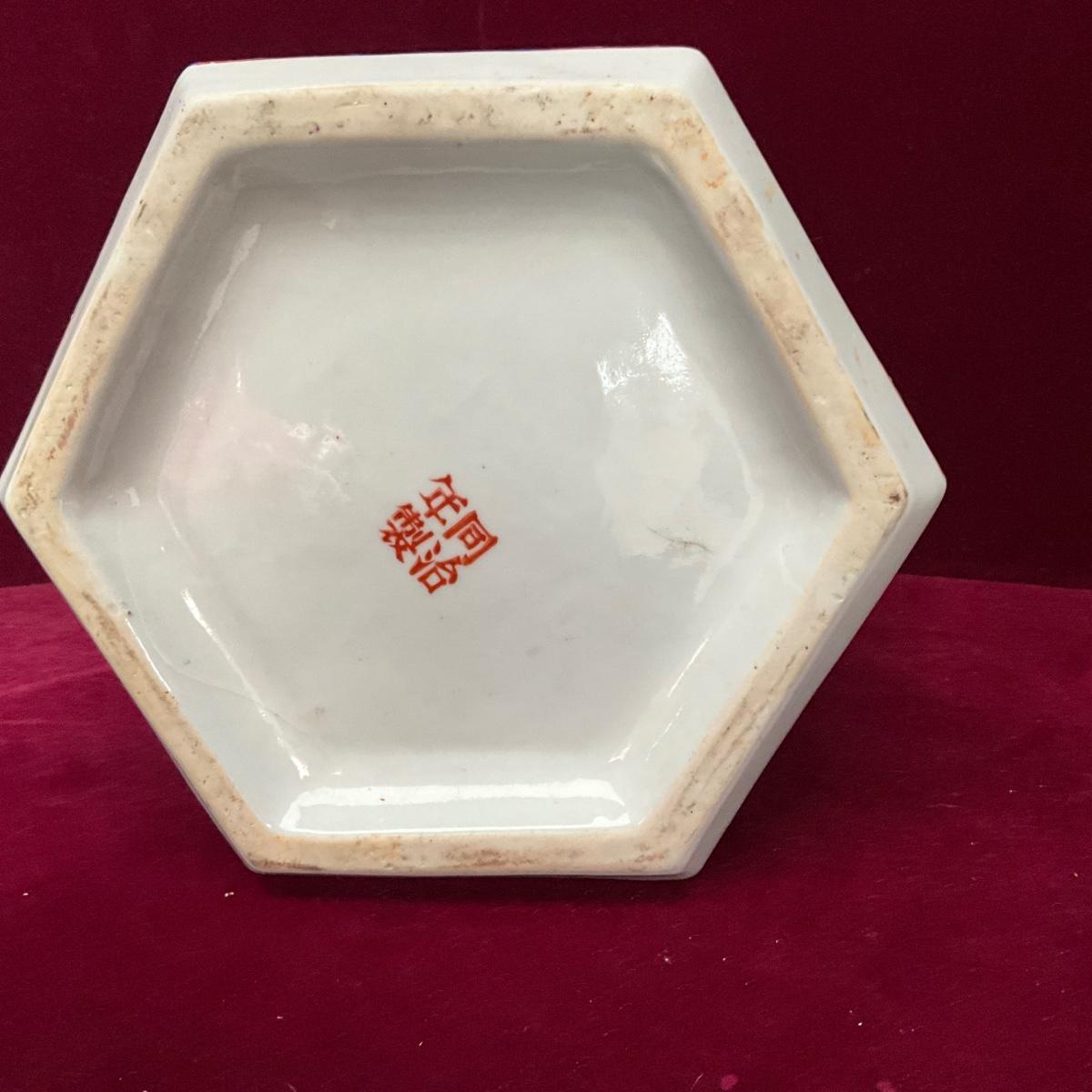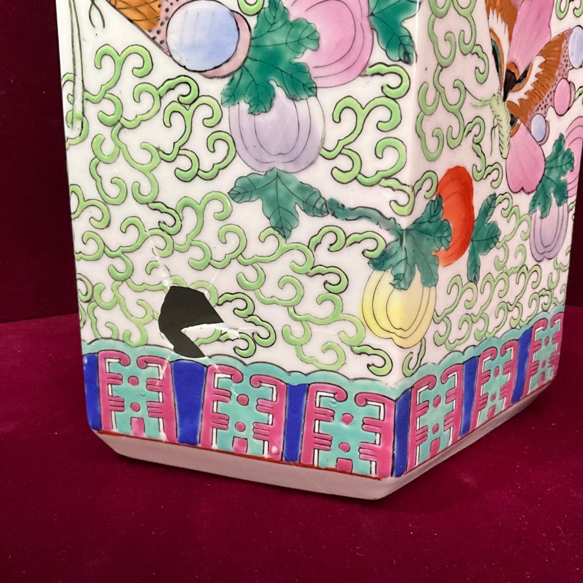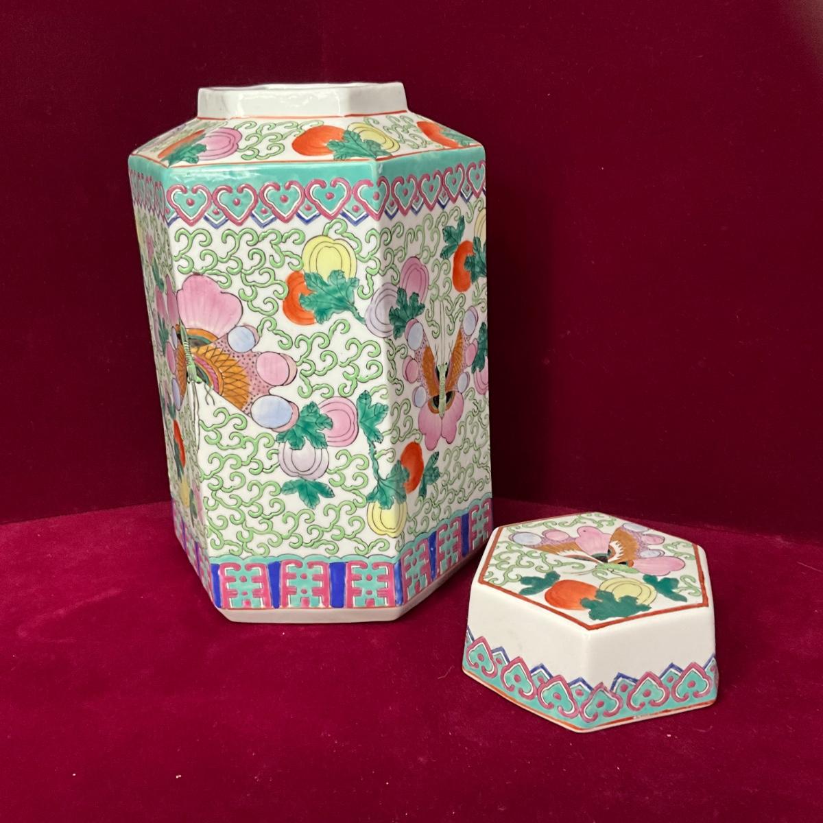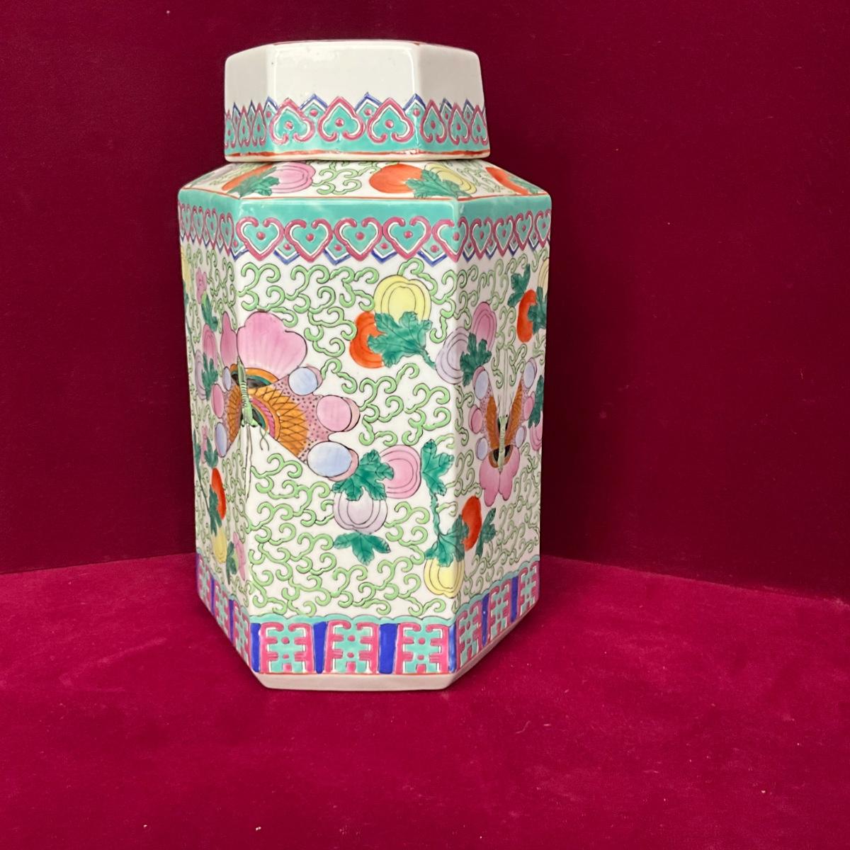 Lot# 104 Beautiful Large Vintage Hexagon Chinese Ginger Jar with Lid