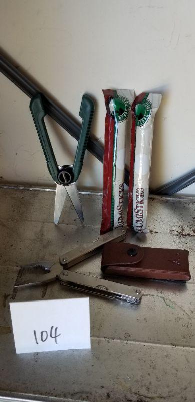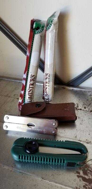 LOT #104: Camping Bundle - American Camper All Purposr Folding Tool, Hideaway Scissors and Glow Lights