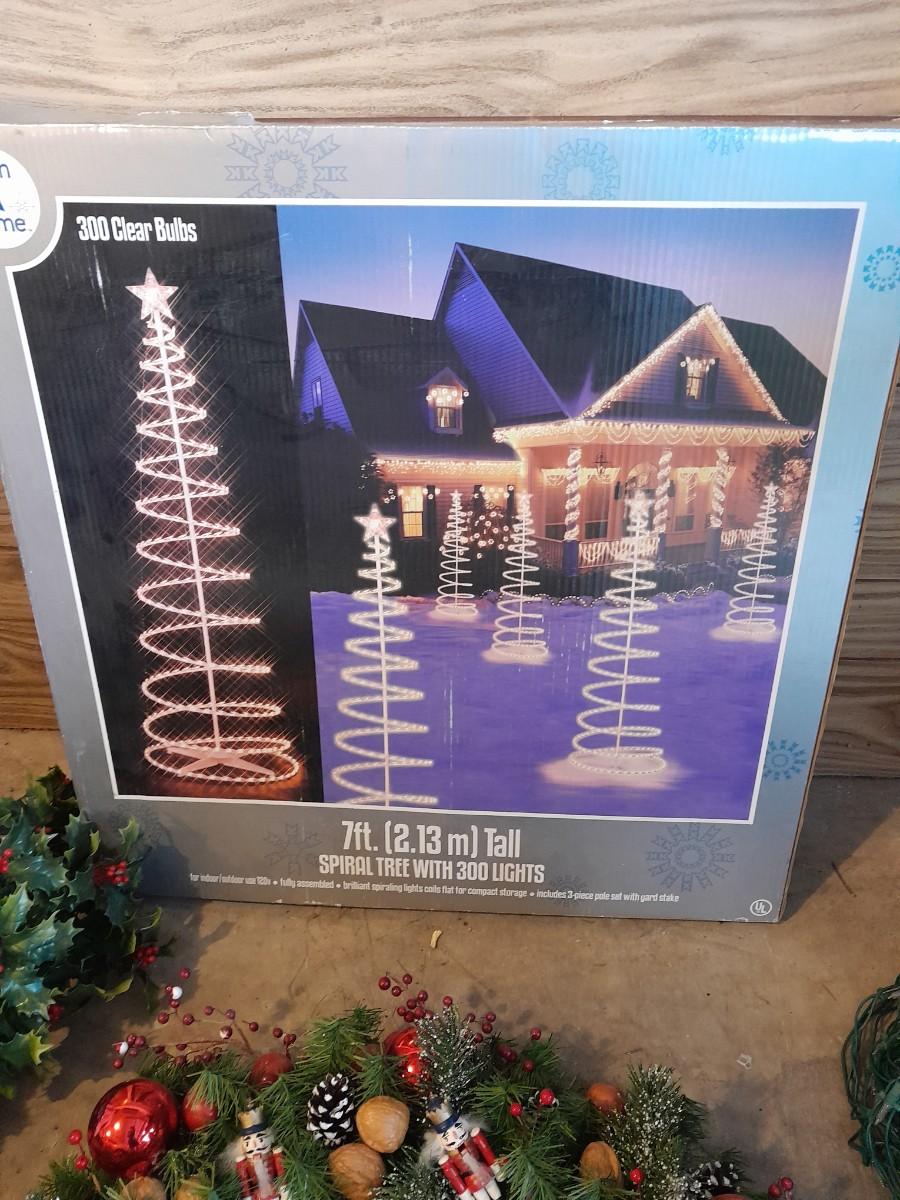 CHRISTMAS GREENERY, 300 LIGHT SPIRAL TREE, LIGHTS AND MORE