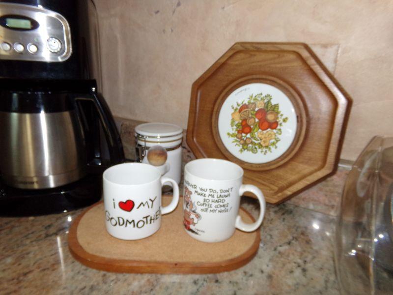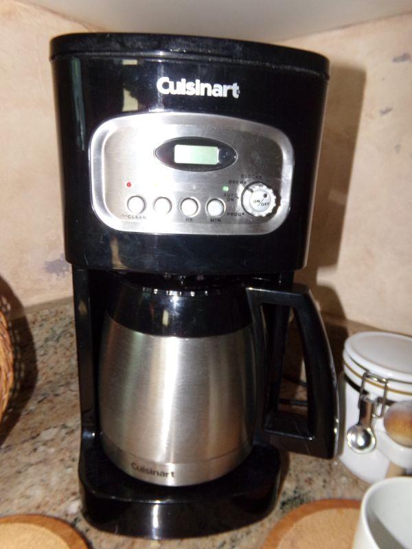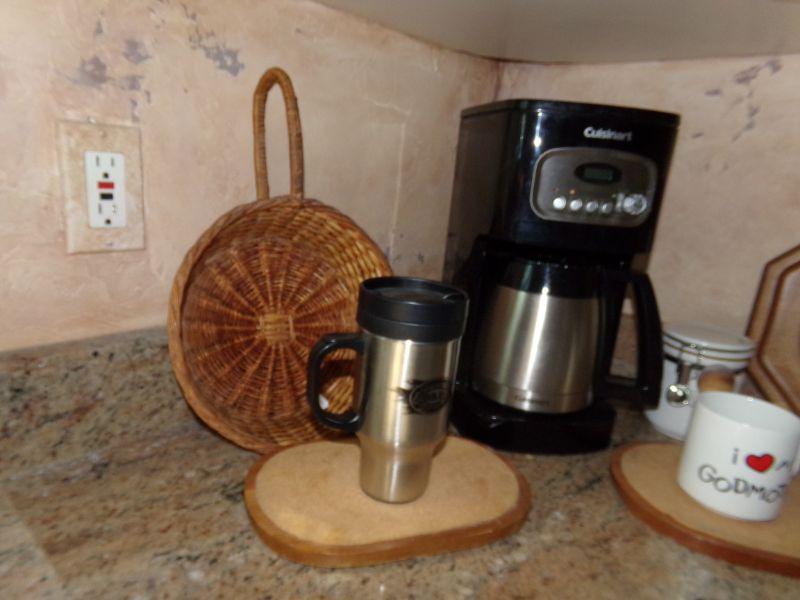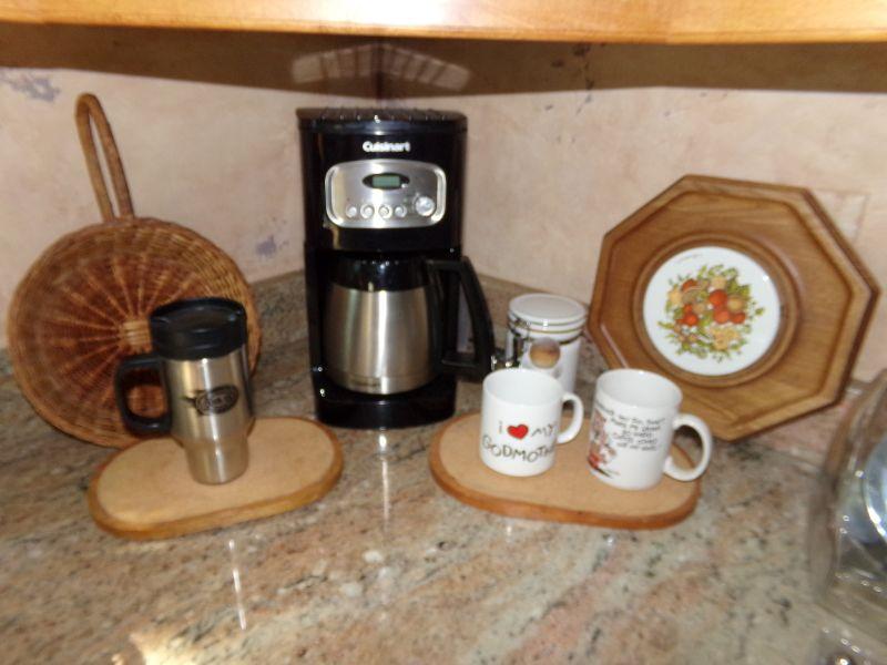 CUISINART COFFEE MAKER WITH TIMER SO COFFEE IS MADE BEFORE YOU GET UP, MUGS AND TRAVEL CUP, CUTTING BOARD AND MORE