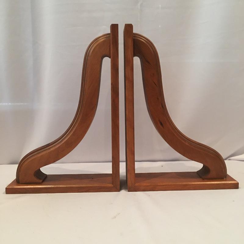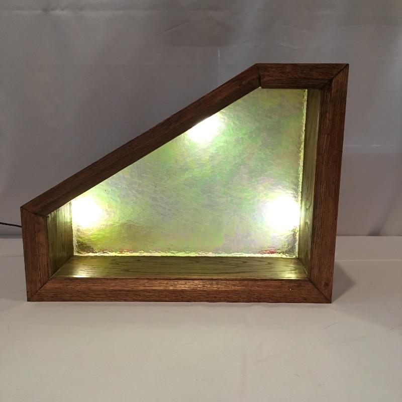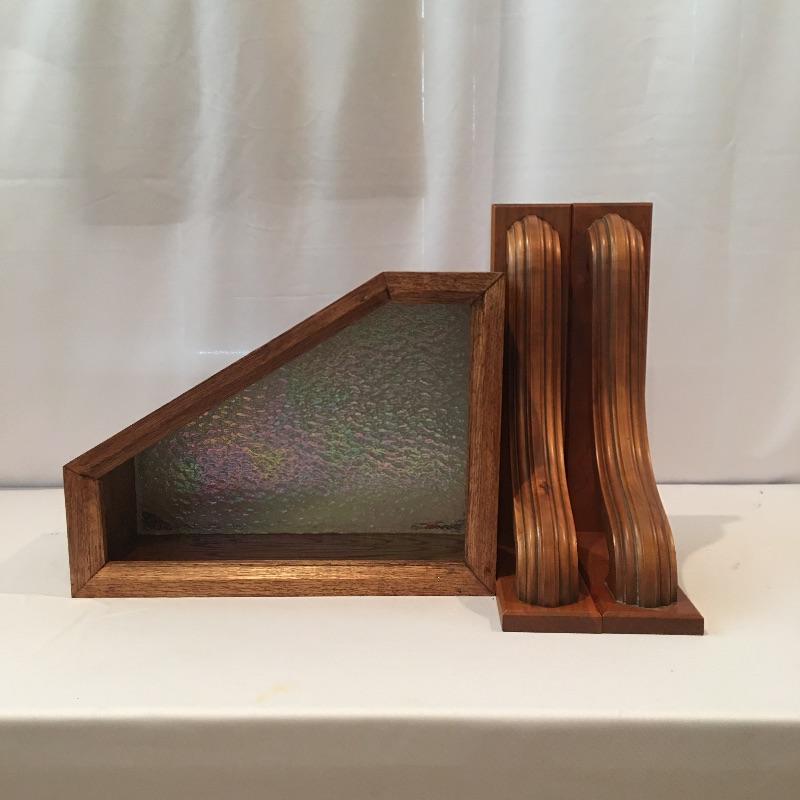 A pair of beautiful wooden corbels in a medium mocha color. There is also a unique light box in this lot for decor.