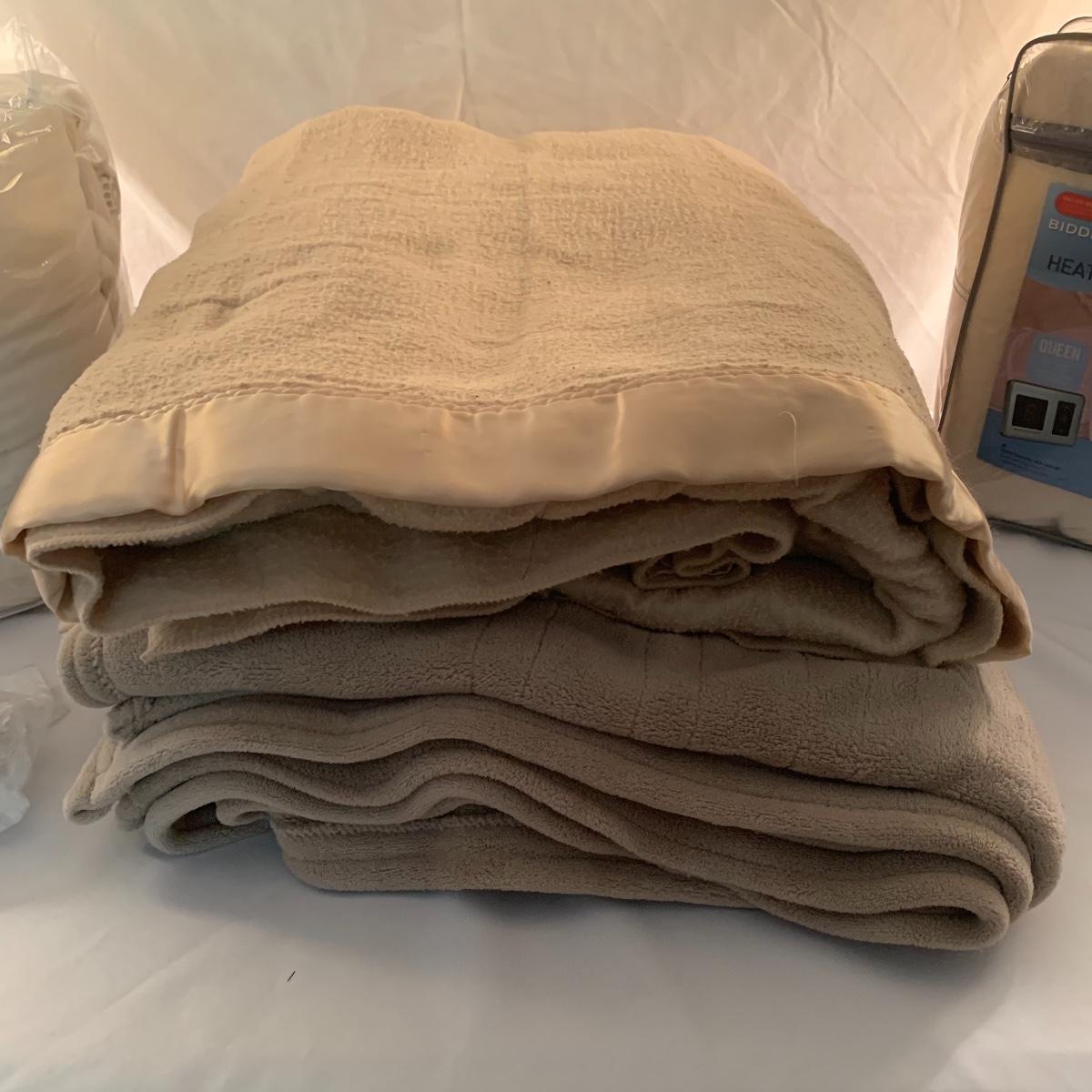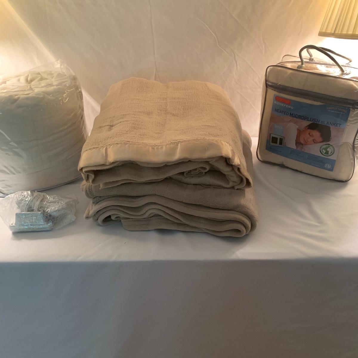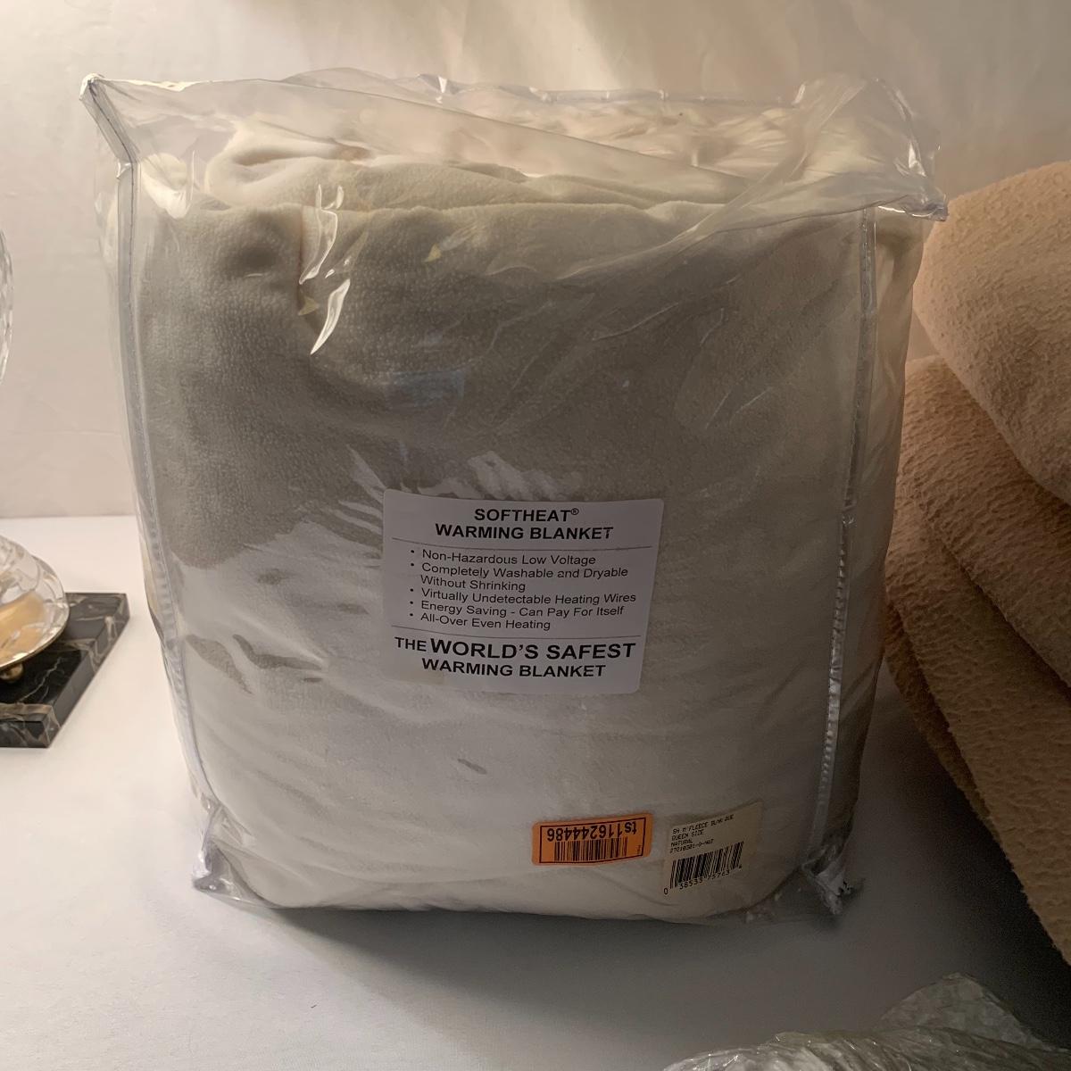 Stay warm all winter with this electric blanket lot. Featured are several electric queen sized blankets and controllers. Two blankets remain in their original packaging, one is a Queen Biddeford Heated Microplush Blanket, and the other is Soft Heat Warming Blanket. Don’t go cold this winter! Lot also includes three Biddeford controls, two SunBeam controls, two Sears Roebuck style 84Q controls.