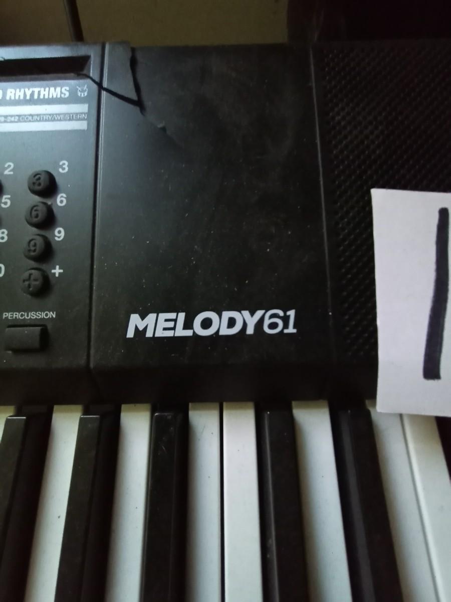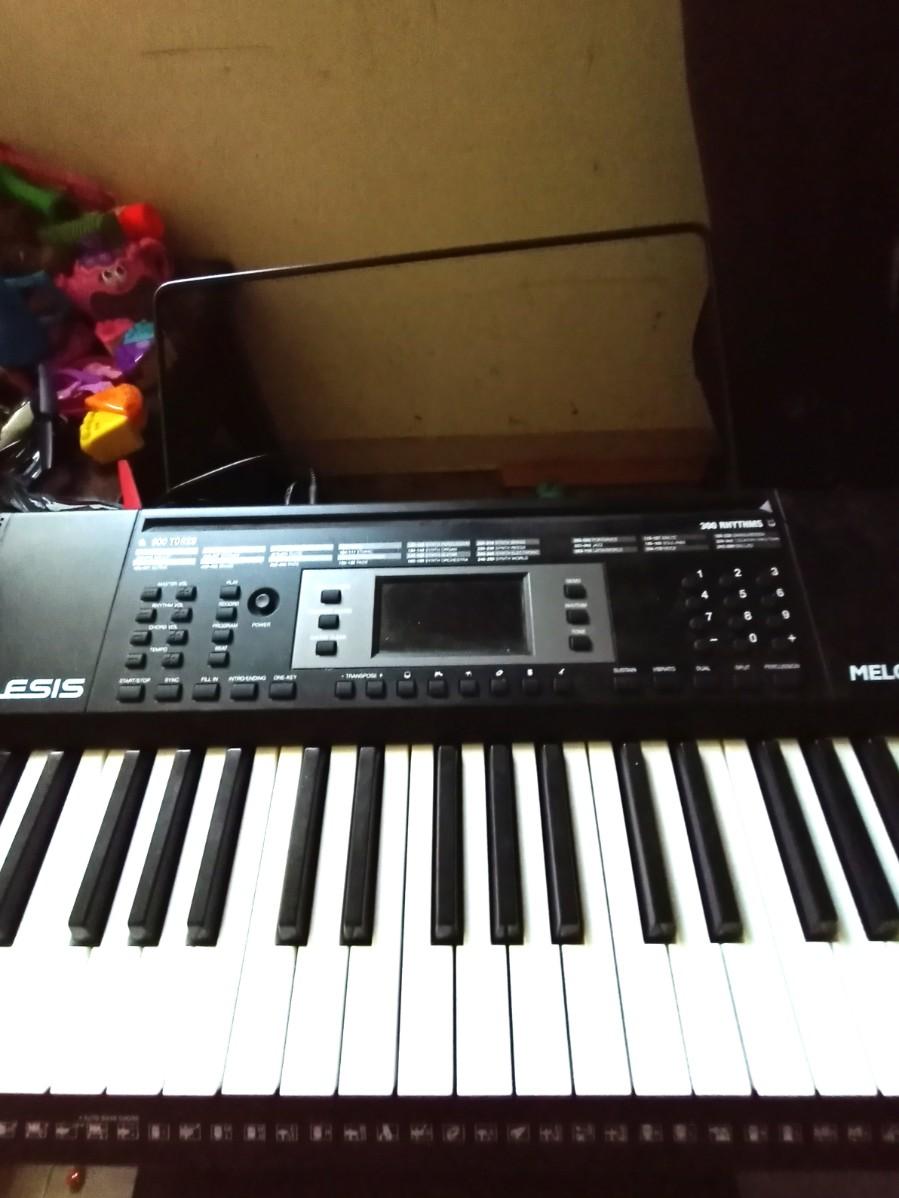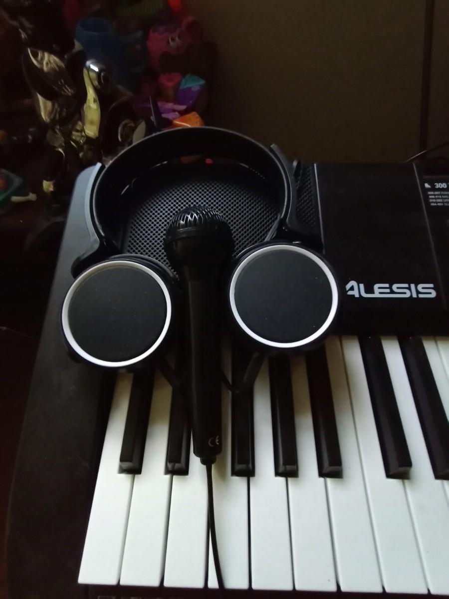 ALESIS ELECTRIC KEYBOARD MODEL TDR23 WITH MELODY 61 AND 300 RHYTHEMS, WITH HEADPHONES AND MIC THAT PLUGS INTO THE BACK MEASURES 37" WIDE AND STOOL