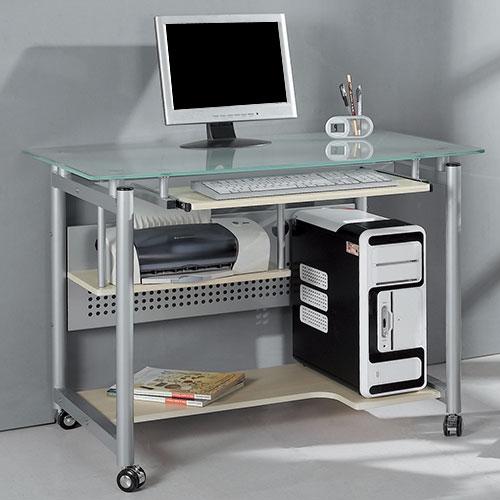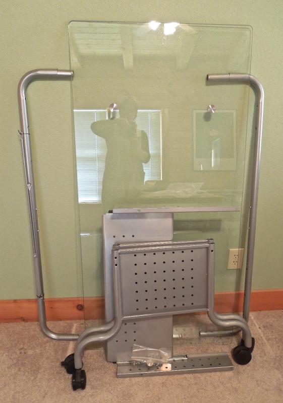 Lot 104: Computer Desk Glass Top Steel Frame Rolling