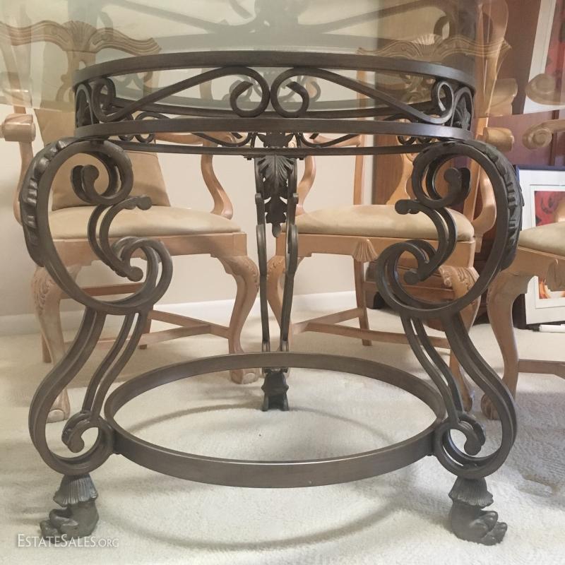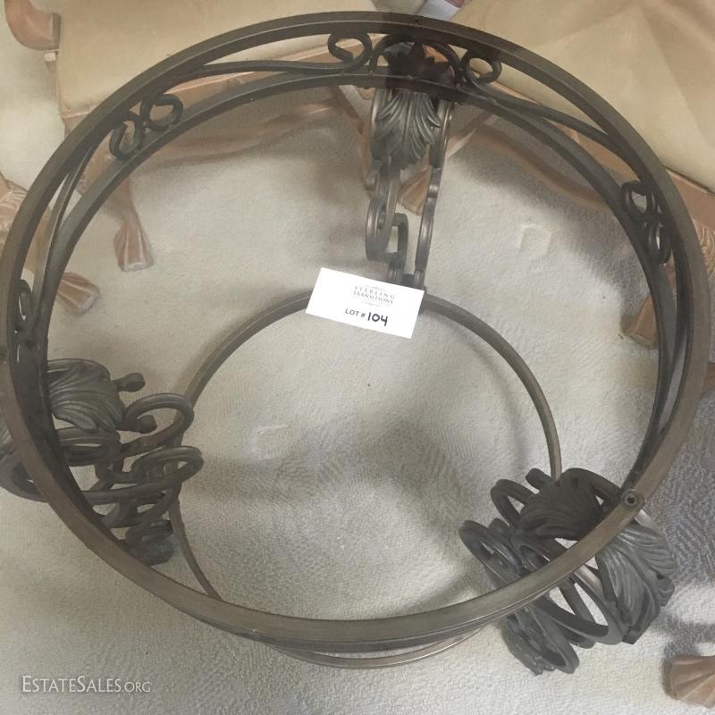 Glass top table with glass top & metal base:
