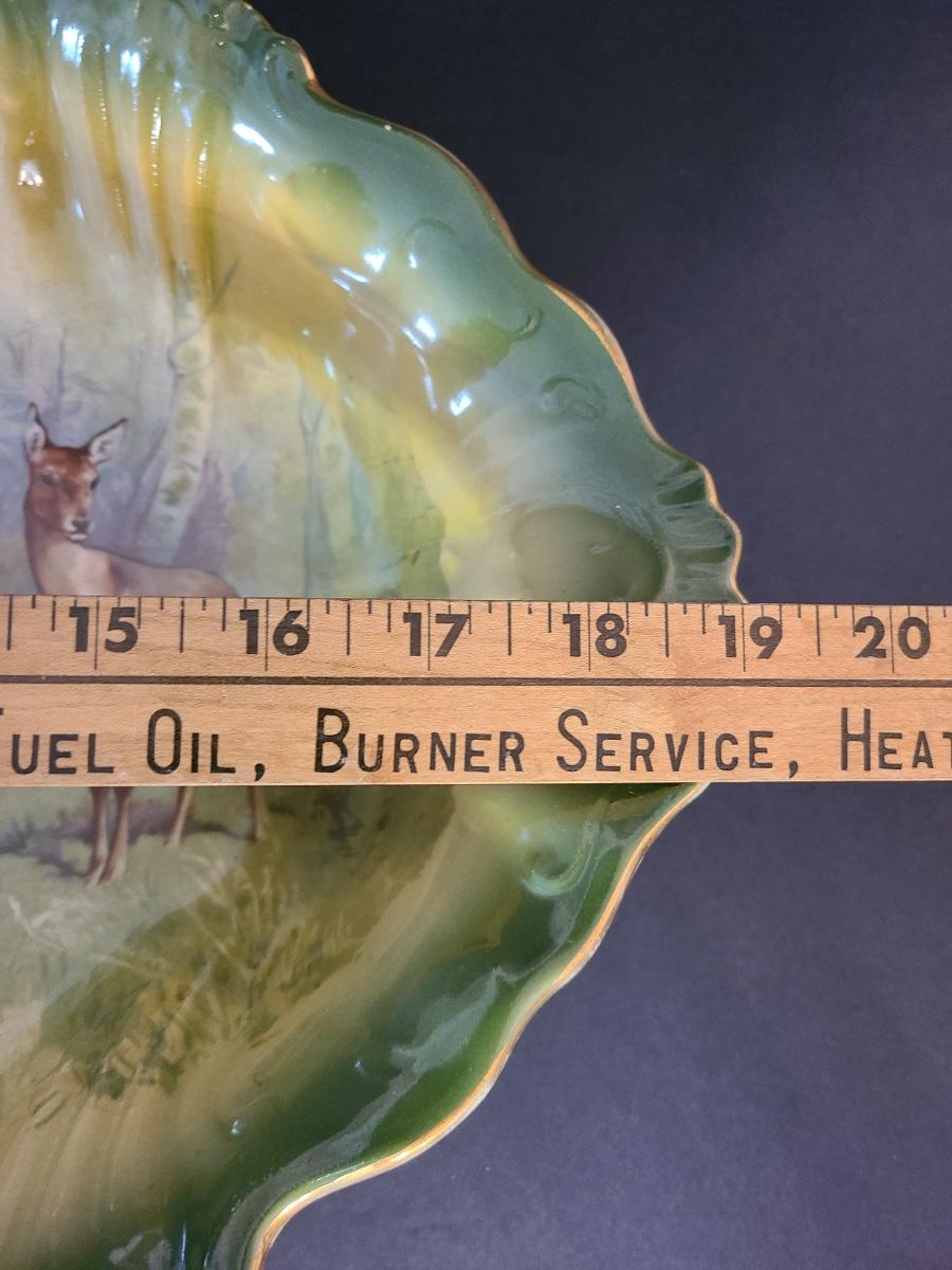 This unique large platter makes for unique art. It has a painted landscape scenery with feet and stag. It is an antique and does show wear to the surface and has a chip to the underneath edge of the platter that is not seen from the top view. Please see all pictures as they are the best representation of the items. The pictures show condition, measurements if taken, and what is included in the lot. Due to the large amount that we photograph and the time frame, we are not always able to take measurements. All items unless noted, are pre-owned and have been used. If you purchased furniture, you must bring help. We do not allow one person to carry large furniture out on their own. Bring help, tools and a truck for the safety of our client’s homes, and your personal safety. Any damages that result to the property including walls, and floors due to moving of the furniture will be charged to the buyer. Company policy. Thank you.