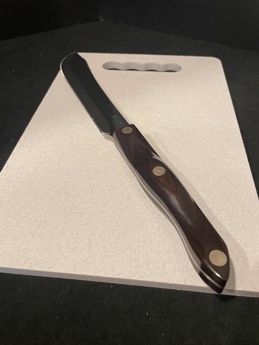 Includes 3 Cutco knives, manual sharpener and two drawer organizing trays.