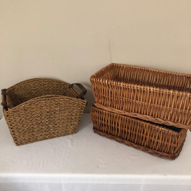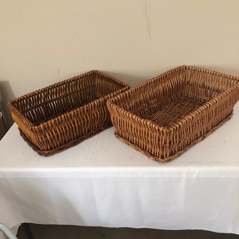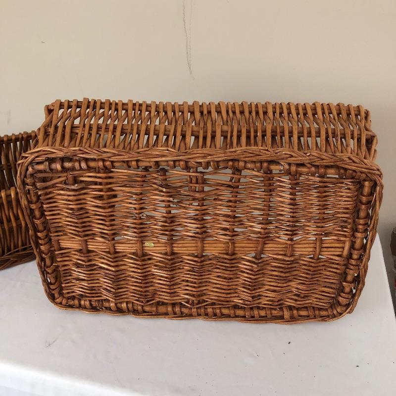 Some great storage potential in this lot with a total of four large baskets. One pair nest in one another and the other pair match each other but are not nesting. One of the baskets has a few blemishes, see images.