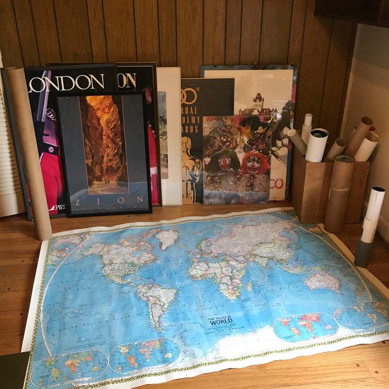 Lot 104 - 4’ Tall World Map and Other Art/Posters