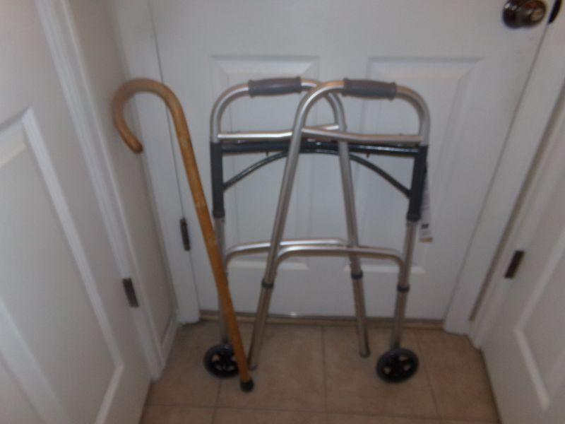 WOODEN CANE, FOLDING, ADJUSTABLE WALKER